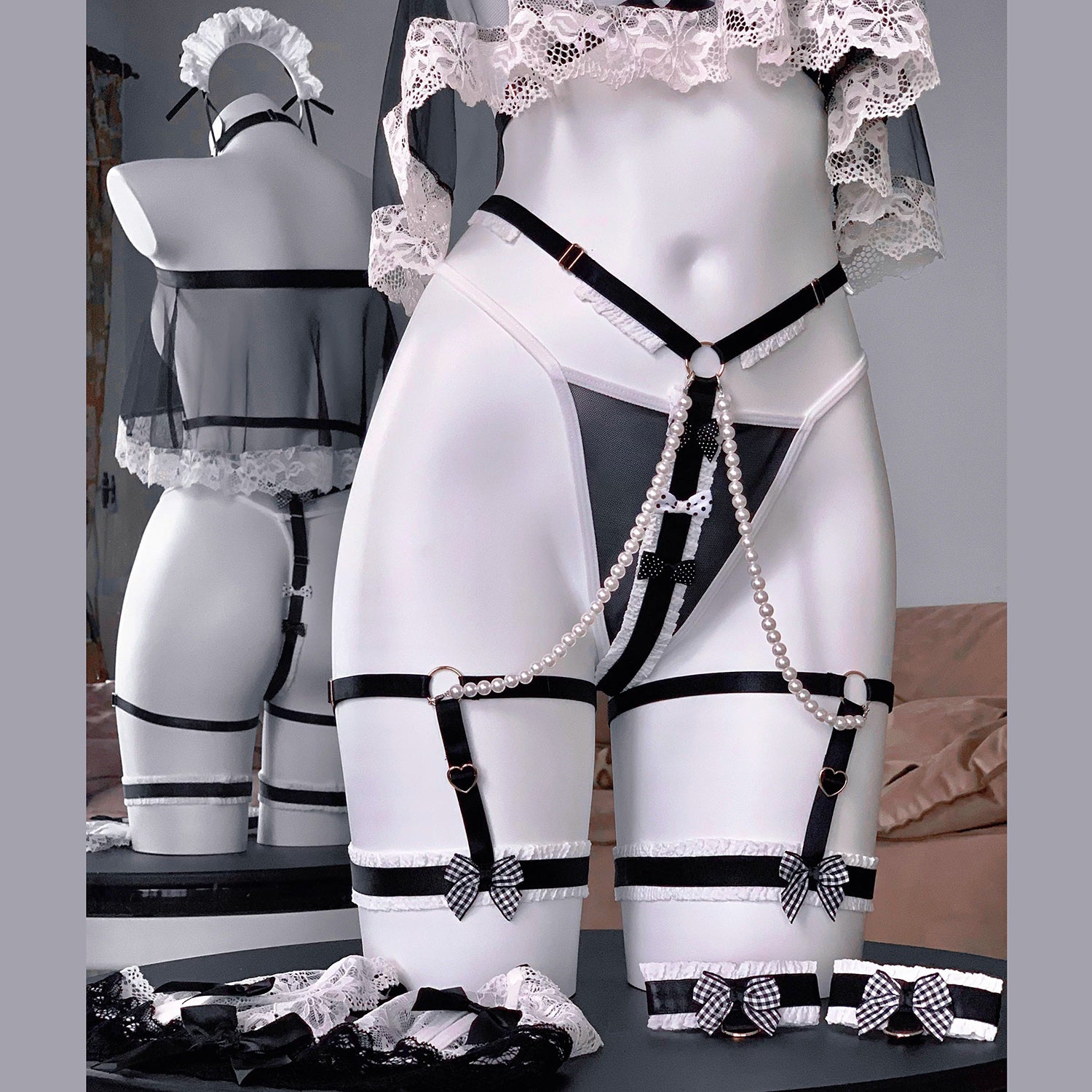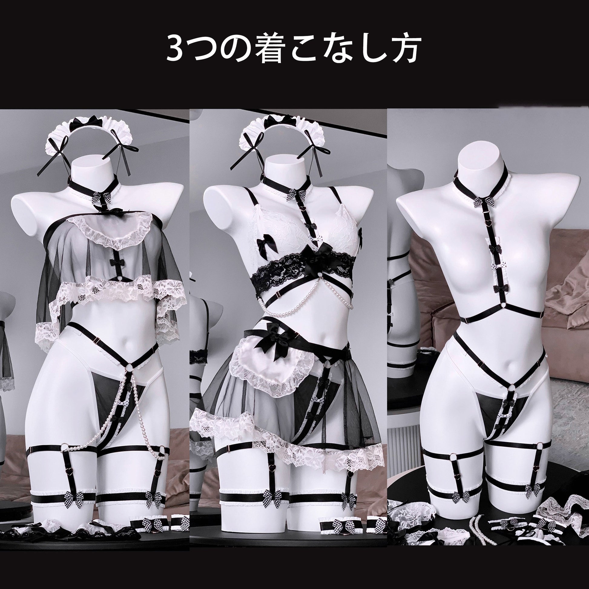 3WAY着用可能なメイド風セクシーハーネスランジェリーコスチューム 透けレース×マイクロビキニの誘惑コーデ【エビスタジオ】