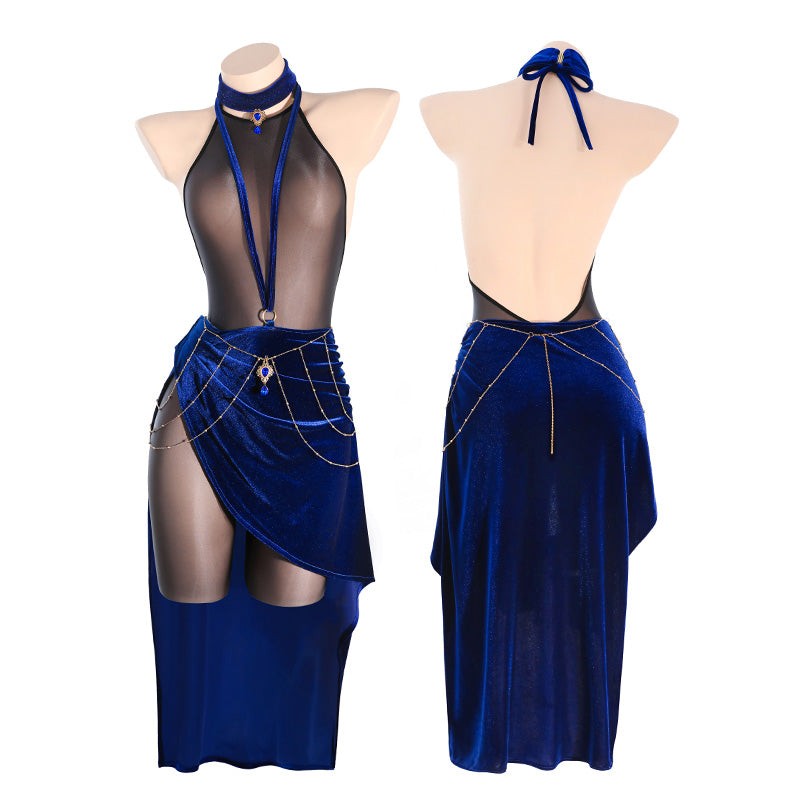 神秘的な占い師をイメージした、大胆かつ妖艶なコスチューム。