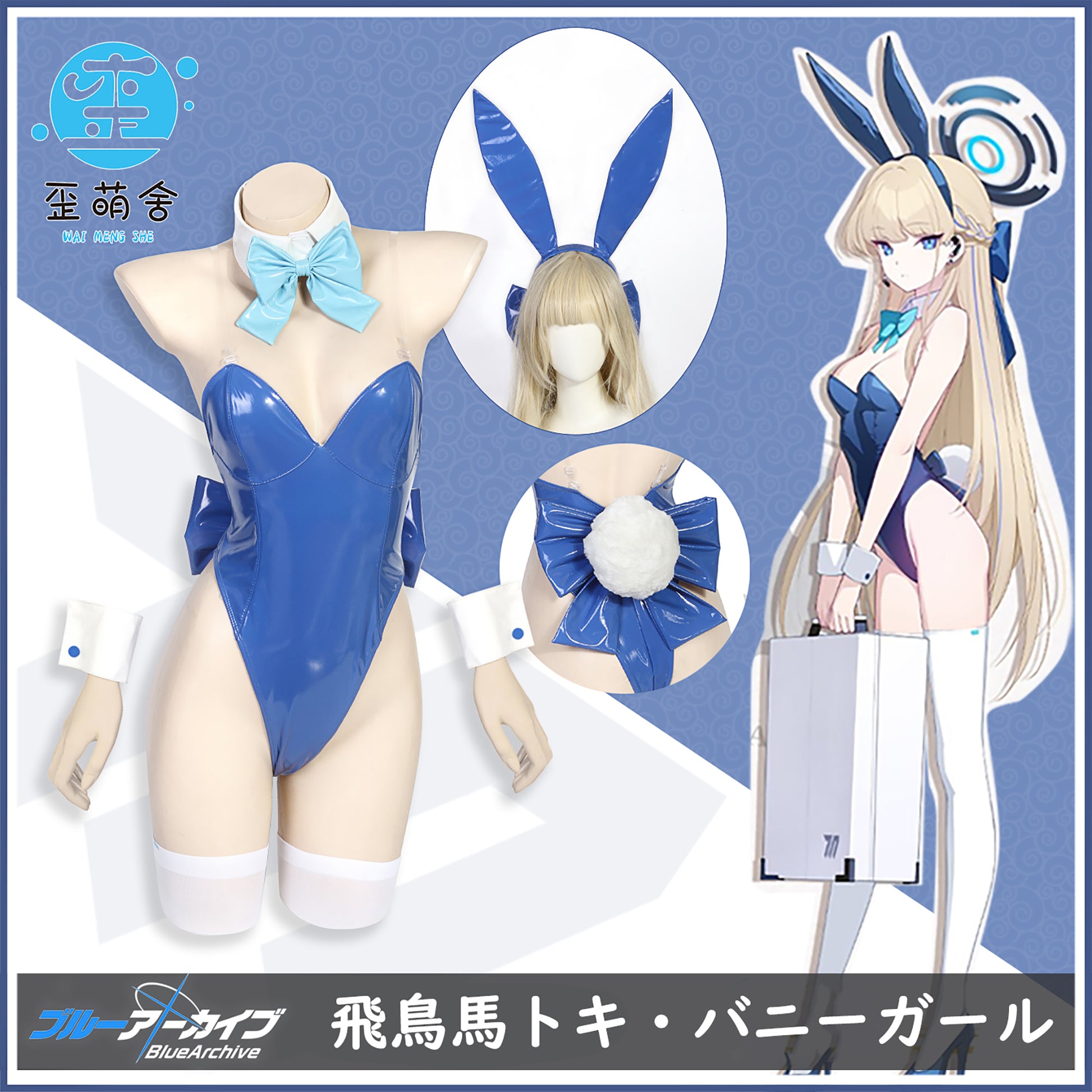 ブルーアーカイブの「飛鳥馬トキ」の紺色バニーガールコスプレ7点セットです!