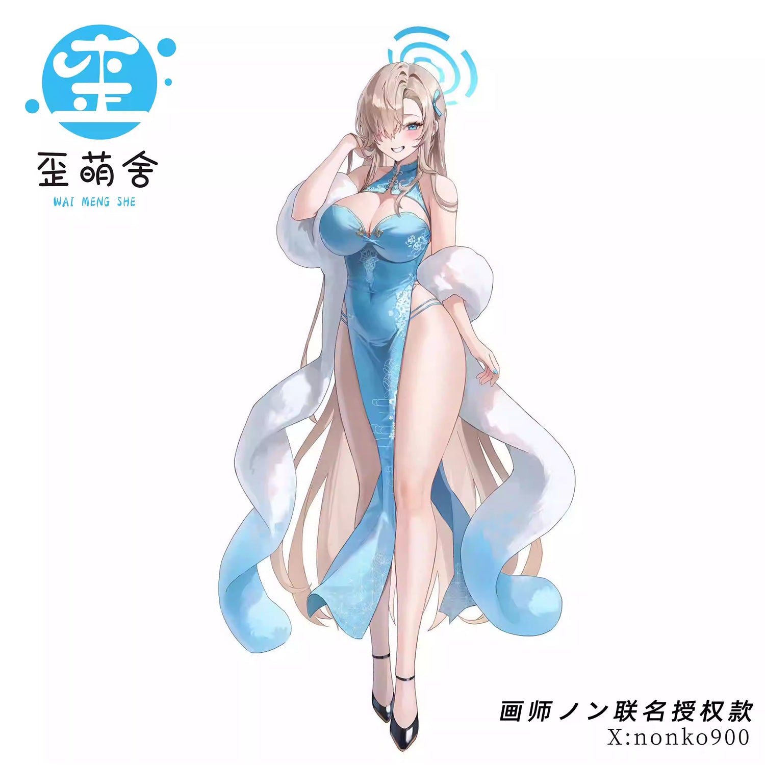 ブルーアーカイブ エレガントでセクシーな明日奈チャイナドレスコスプレ ショール付き ブルー【歪萌舍】