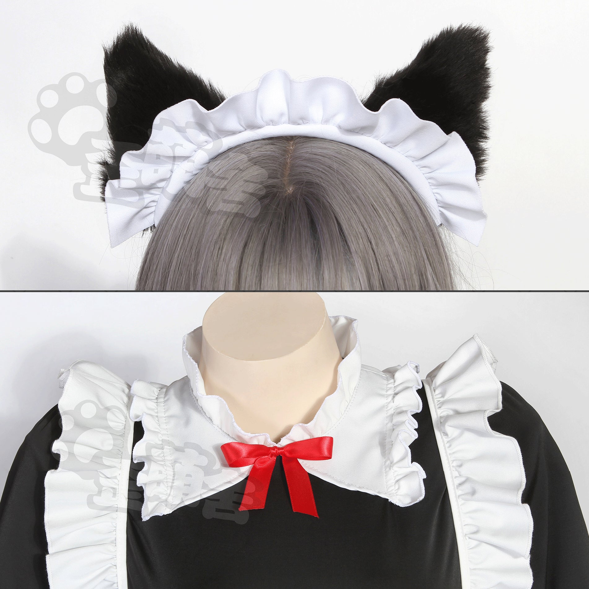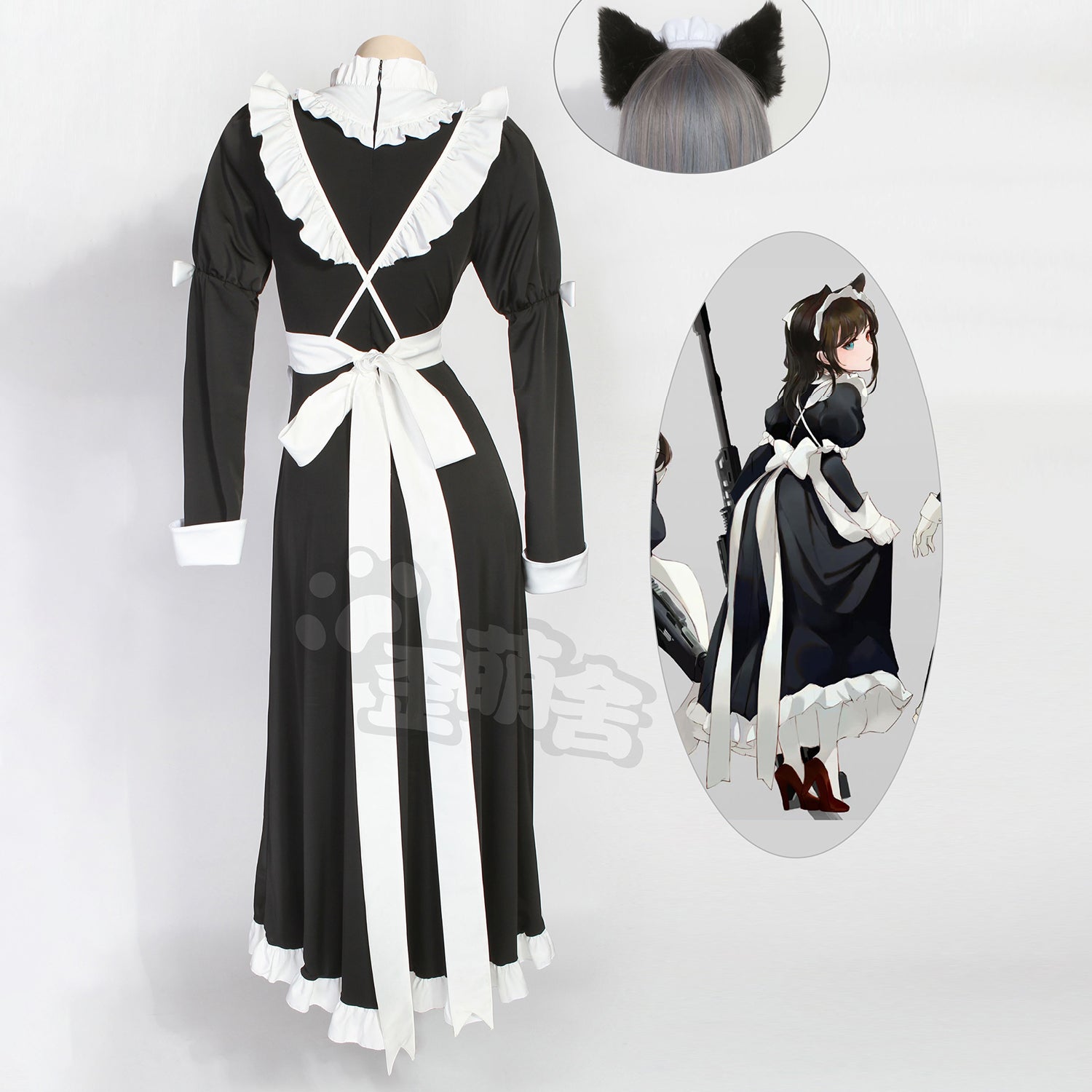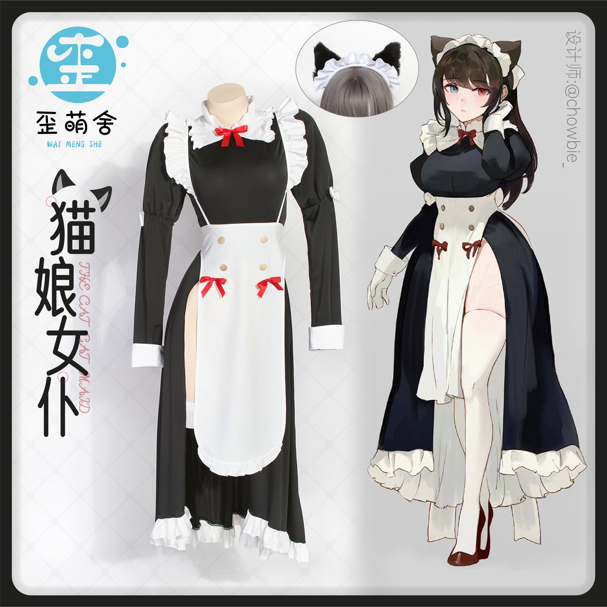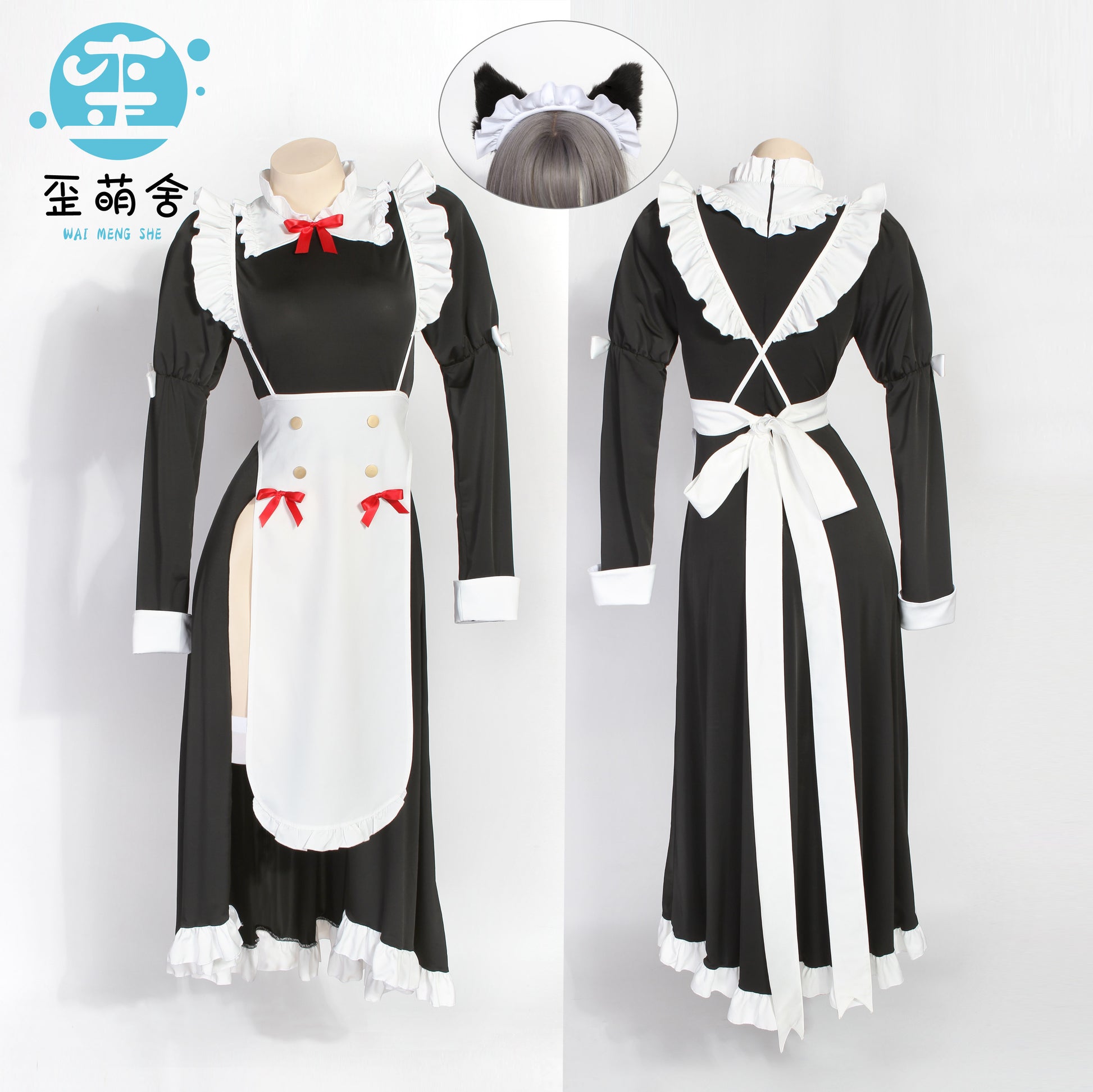 フロントオープン可愛い猫娘ロングメイドコスプレ 猫耳付き【歪萌舍】