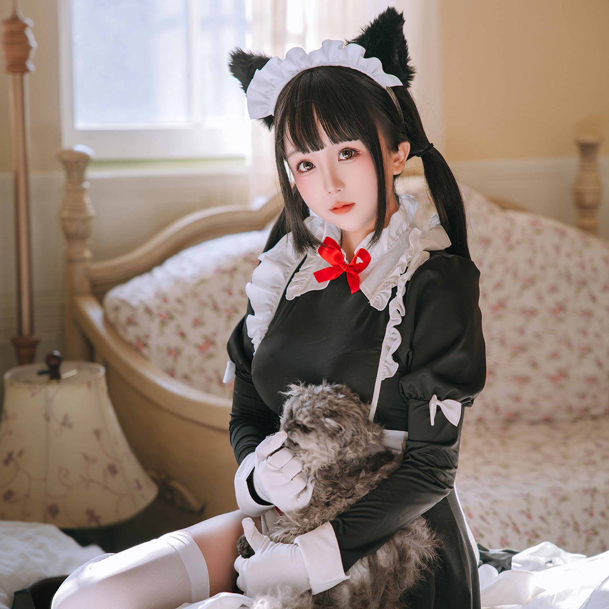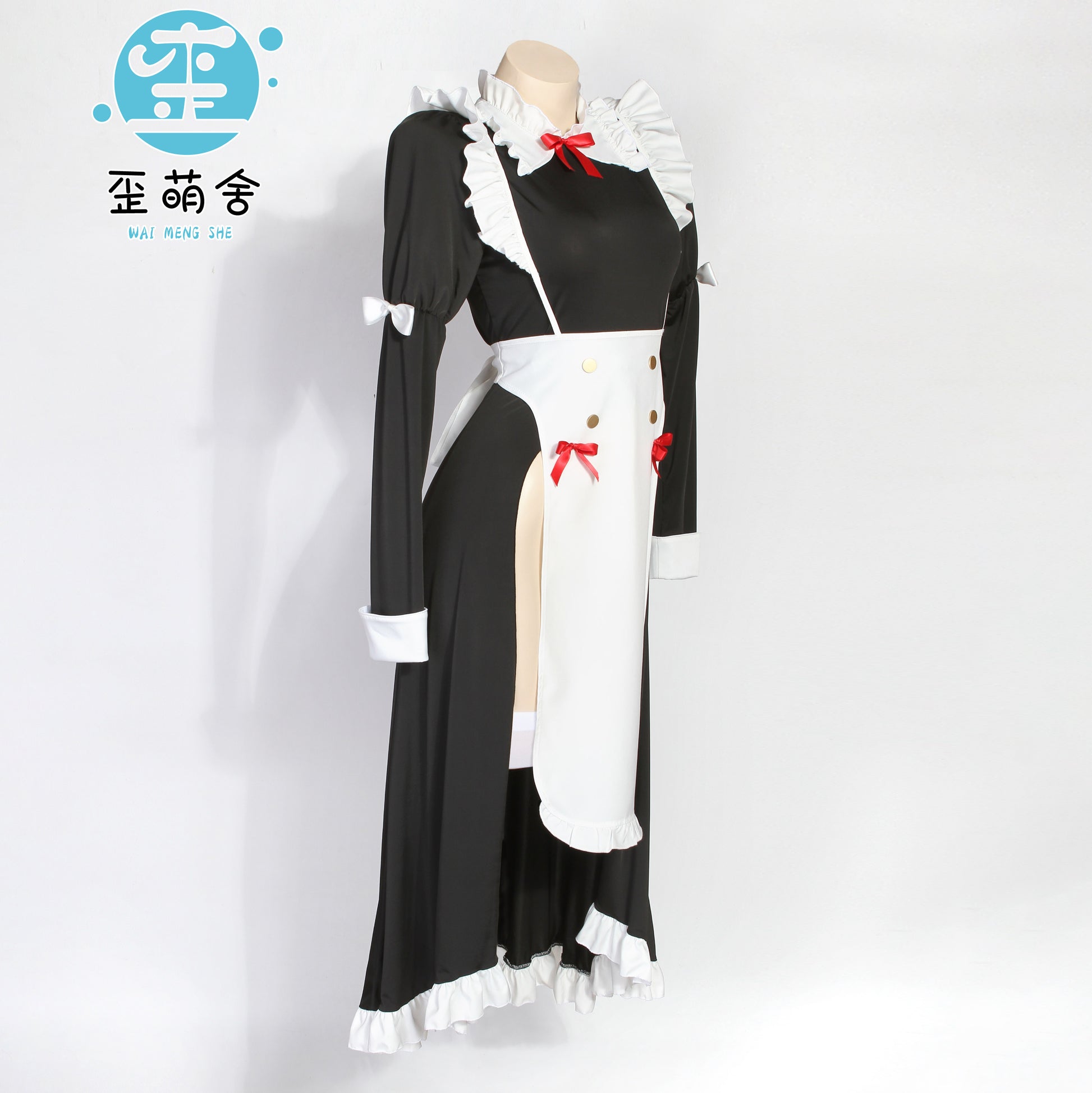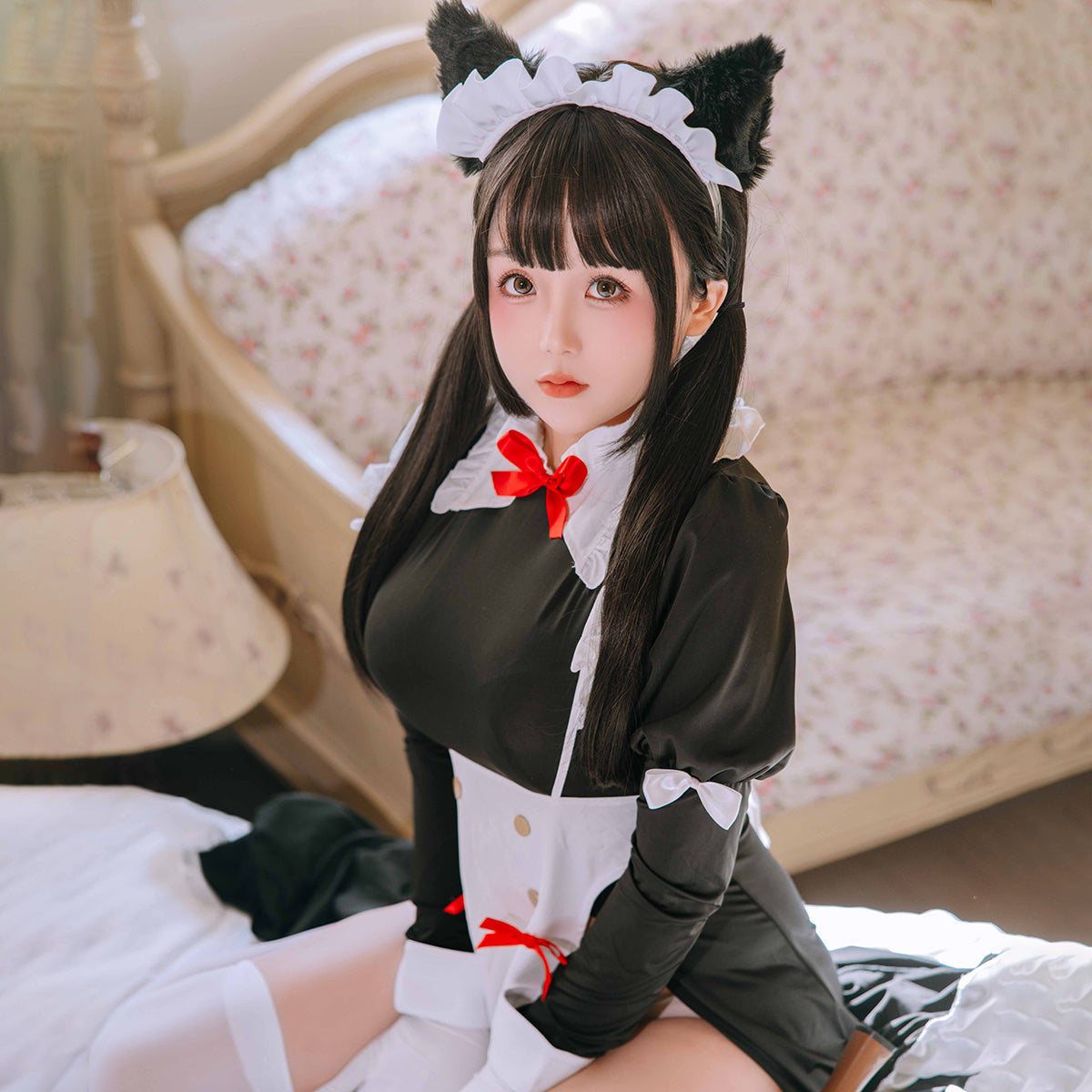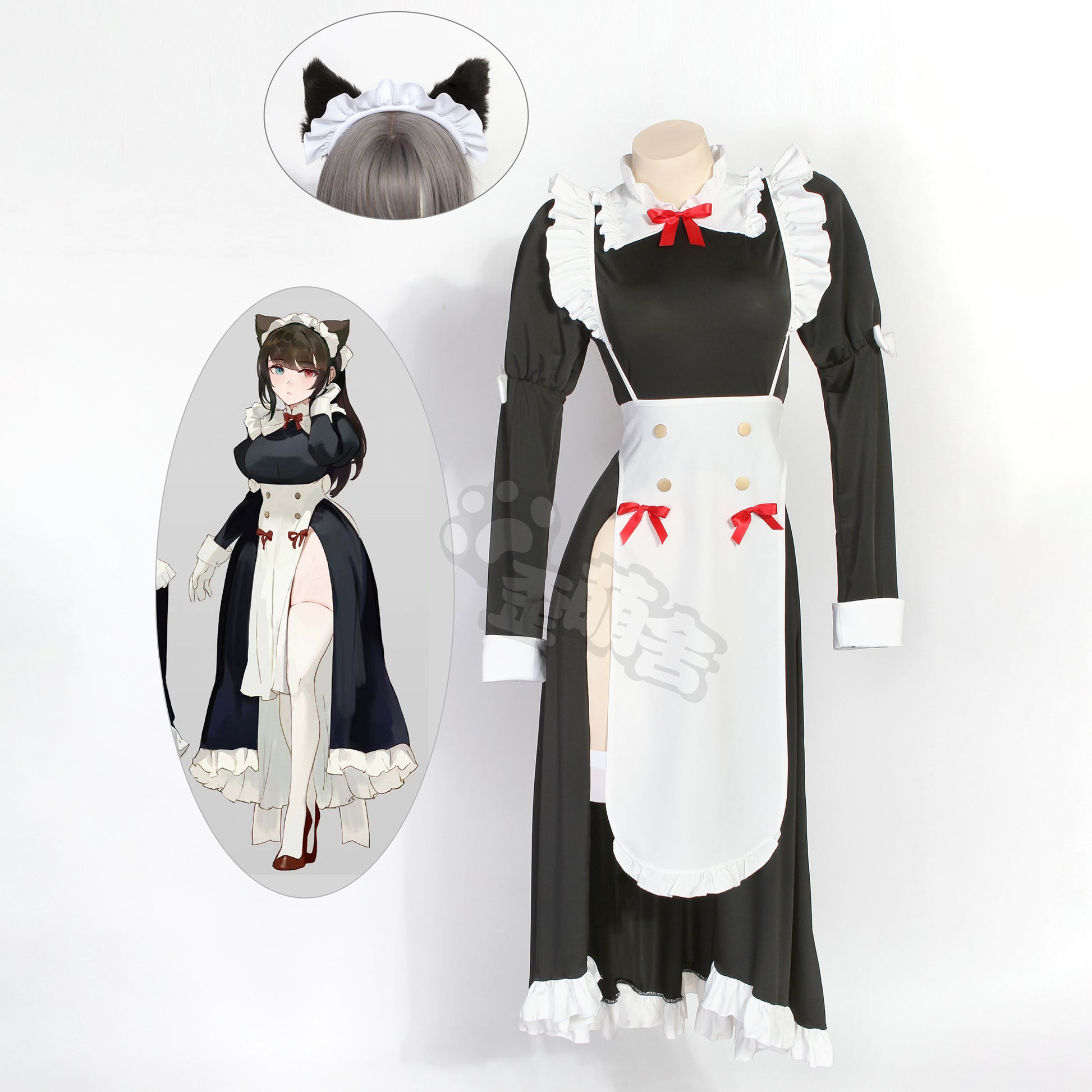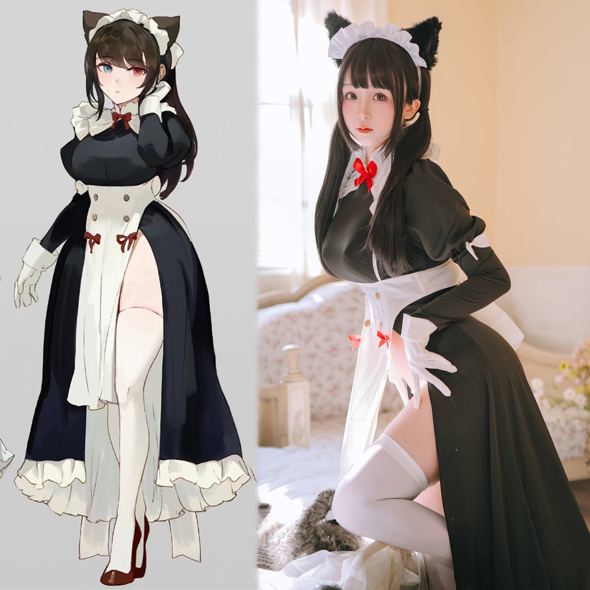フロントオープン可愛い猫娘ロングメイドコスプレ 猫耳付き【歪萌舍】