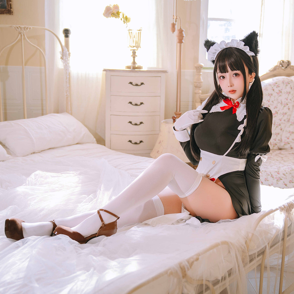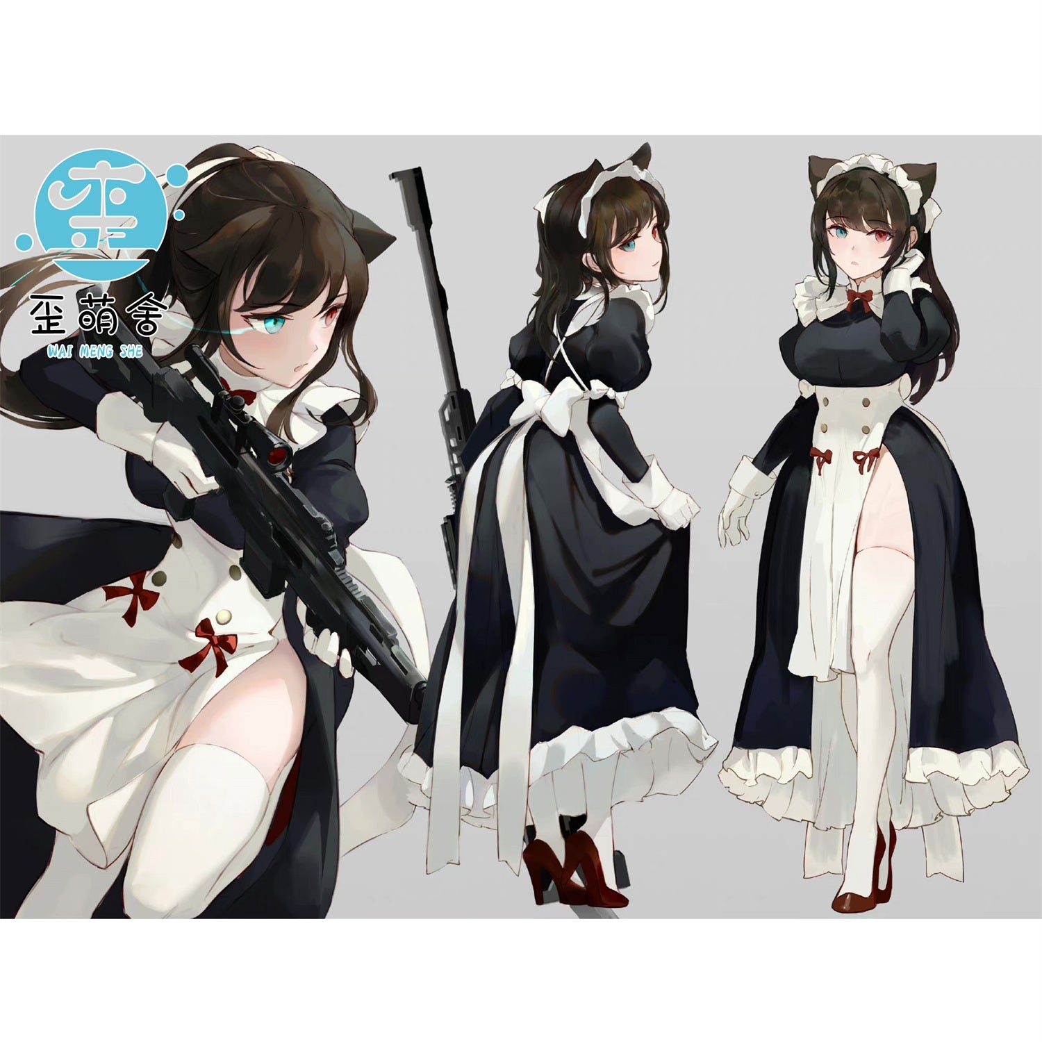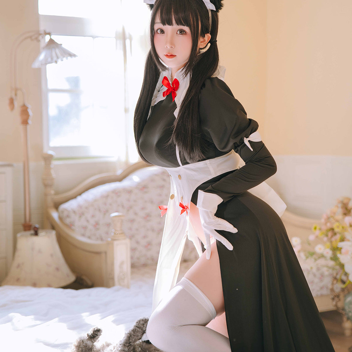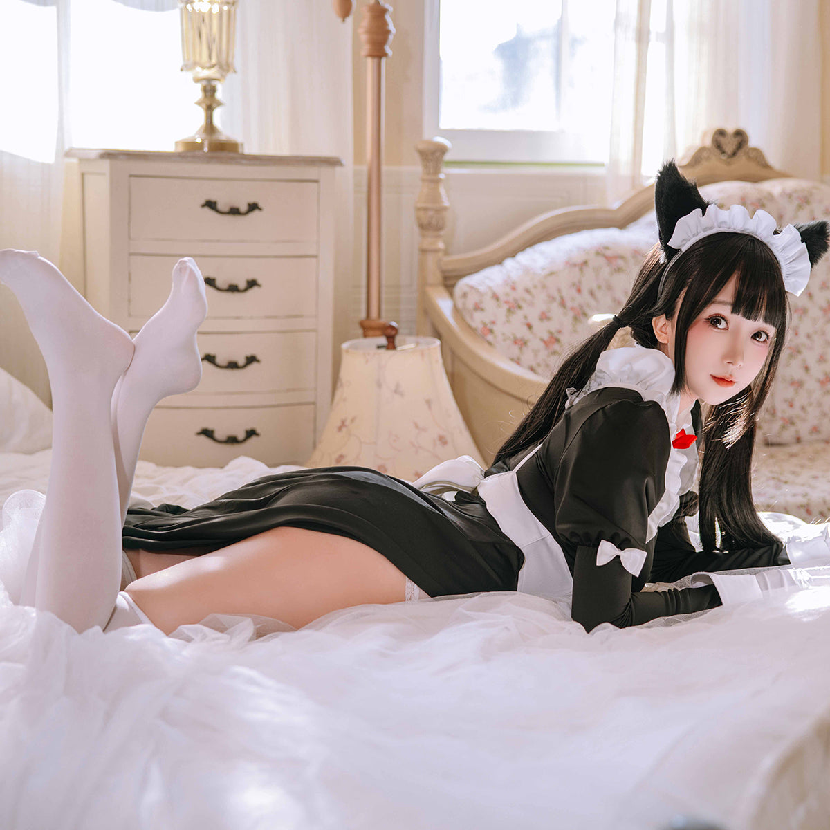 フロントオープン可愛い猫娘ロングメイドコスプレ 猫耳付き【歪萌舍】