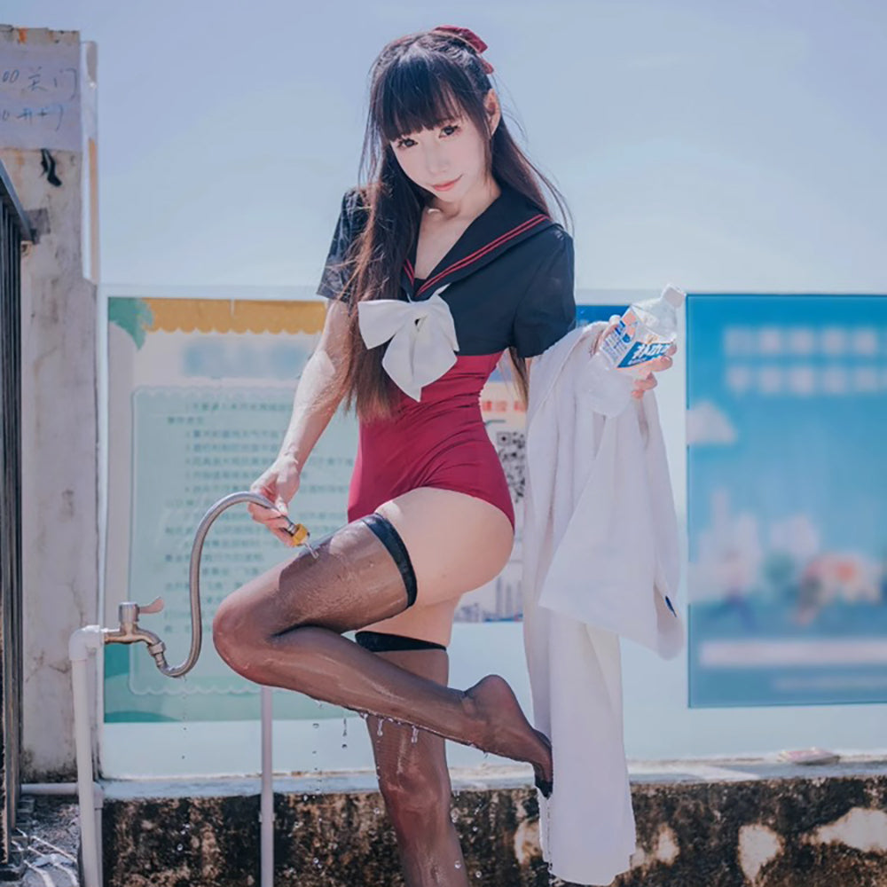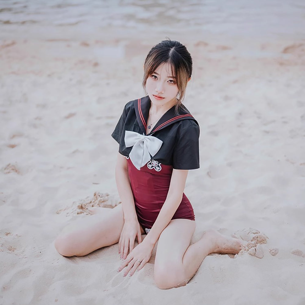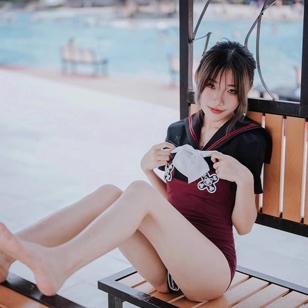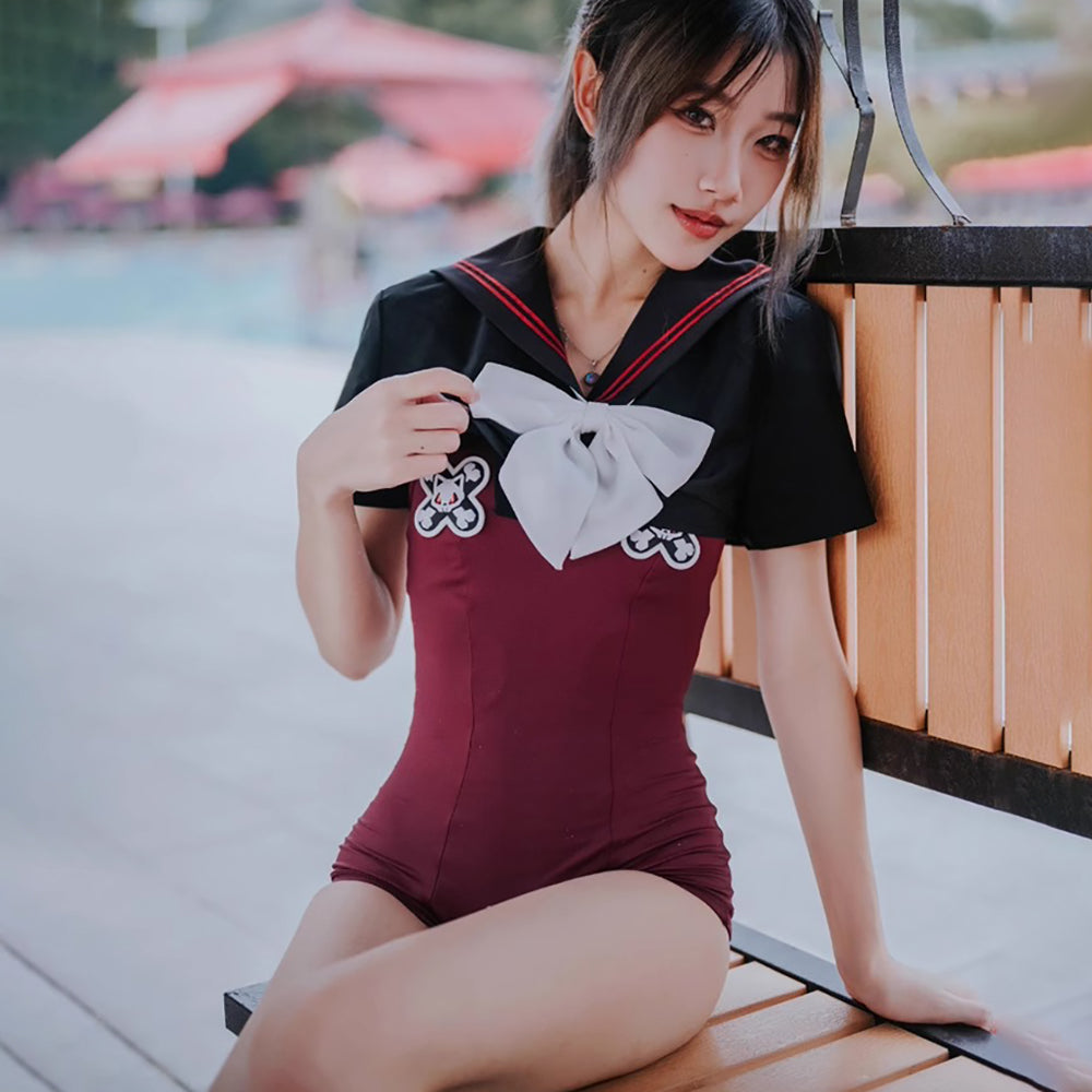 可愛らしさとほんのりセクシーさを兼ね備えた、 セーラー風デザインの水着風レオタードコスチュームです。
