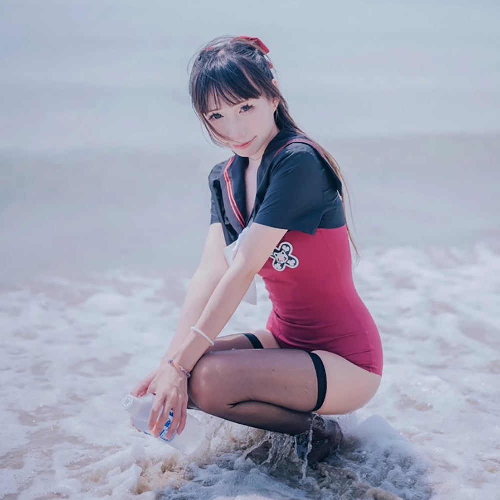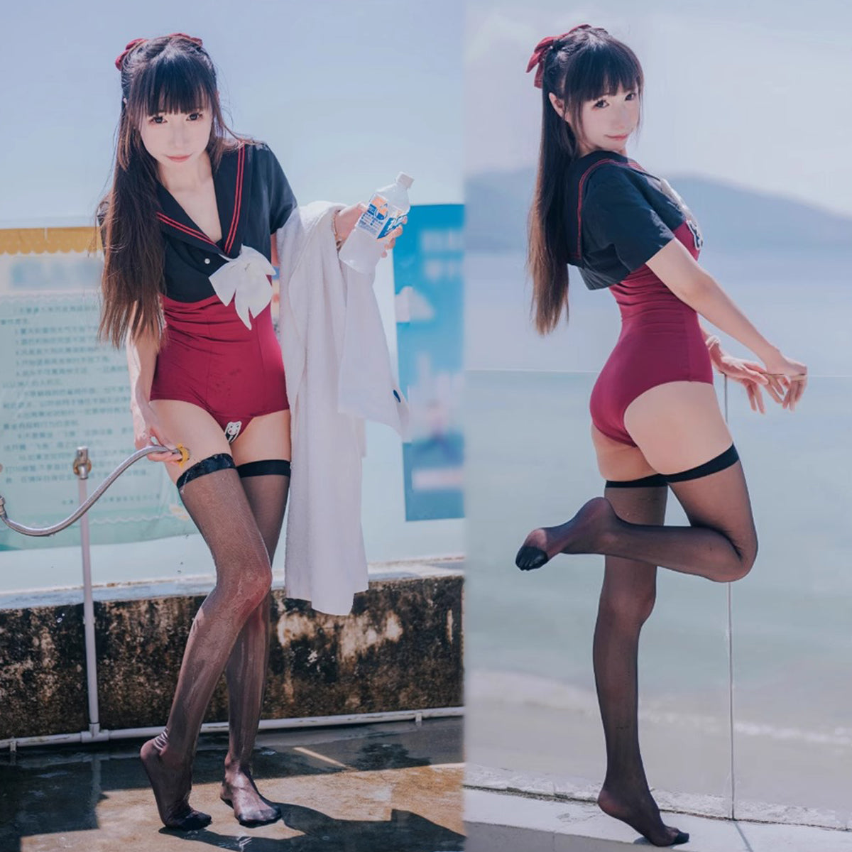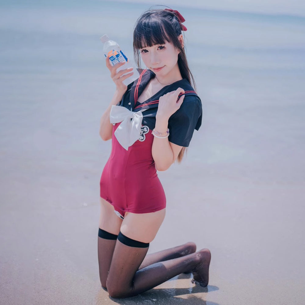 可愛らしさとほんのりセクシーさを兼ね備えた、 セーラー風デザインの水着風レオタードコスチュームです。