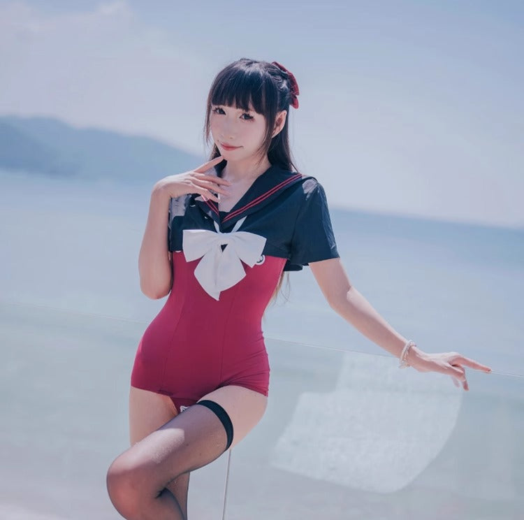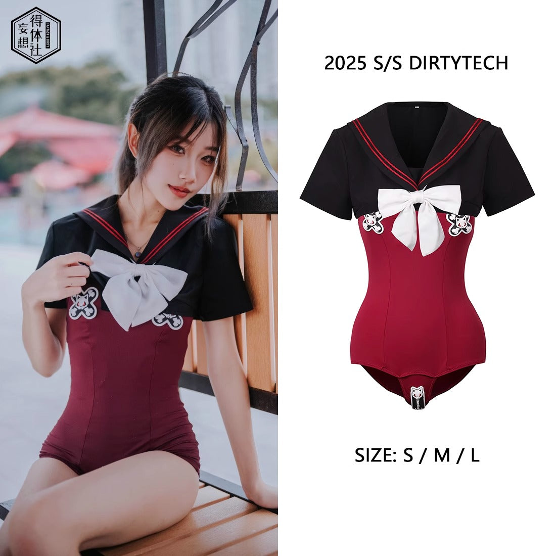 かわいいナツメレッドのセーラー風水着レオタード【得体社】