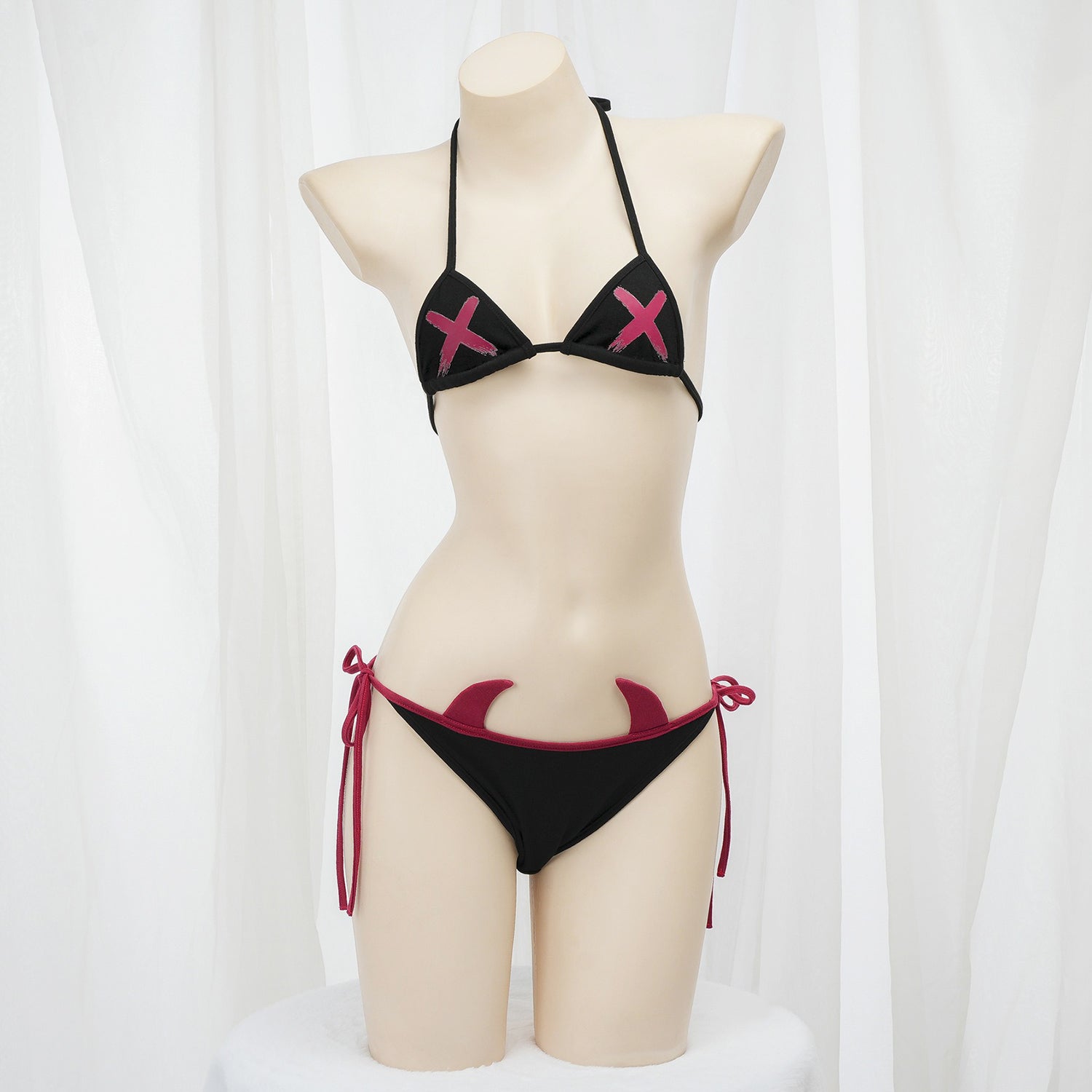 胸元の「×」デザインと、腰の角モチーフがいたずらな魅力を引き立てます。パーカーを羽織ればちょっぴりミステリアスに、外せば一瞬で誘惑モードにチェンジ✨