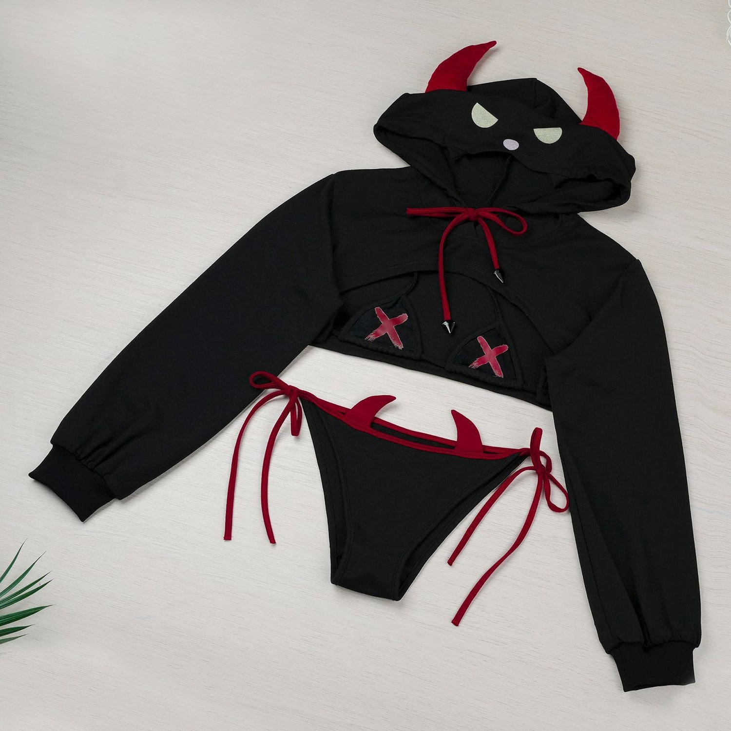 ちょっぴり大胆なセクシー小悪魔パーカー×ビキニコスチュームセット