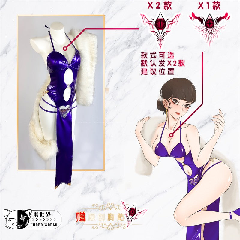エレガントで艷やかなパープルエナメルのチャイナドレス風コスプレ衣装です!