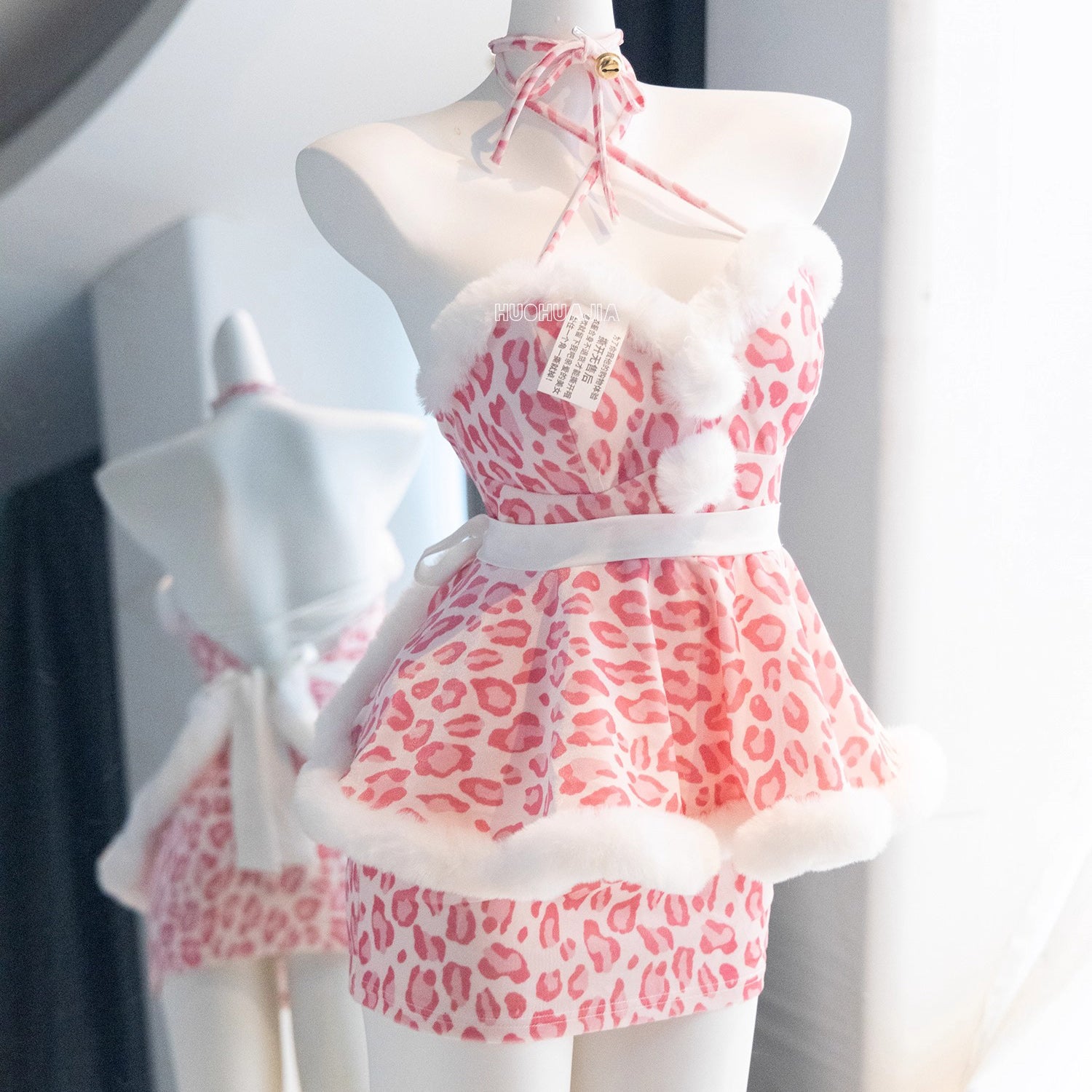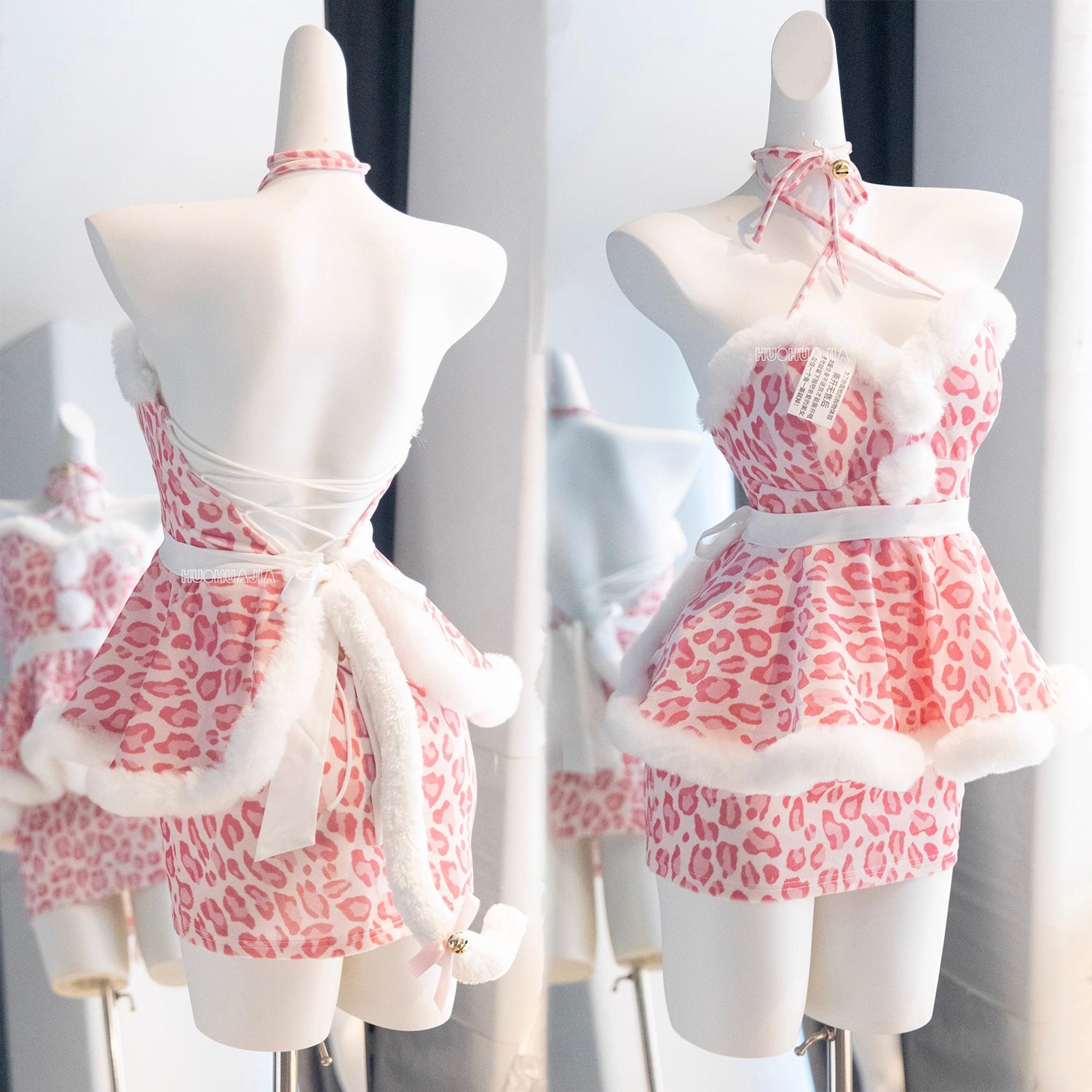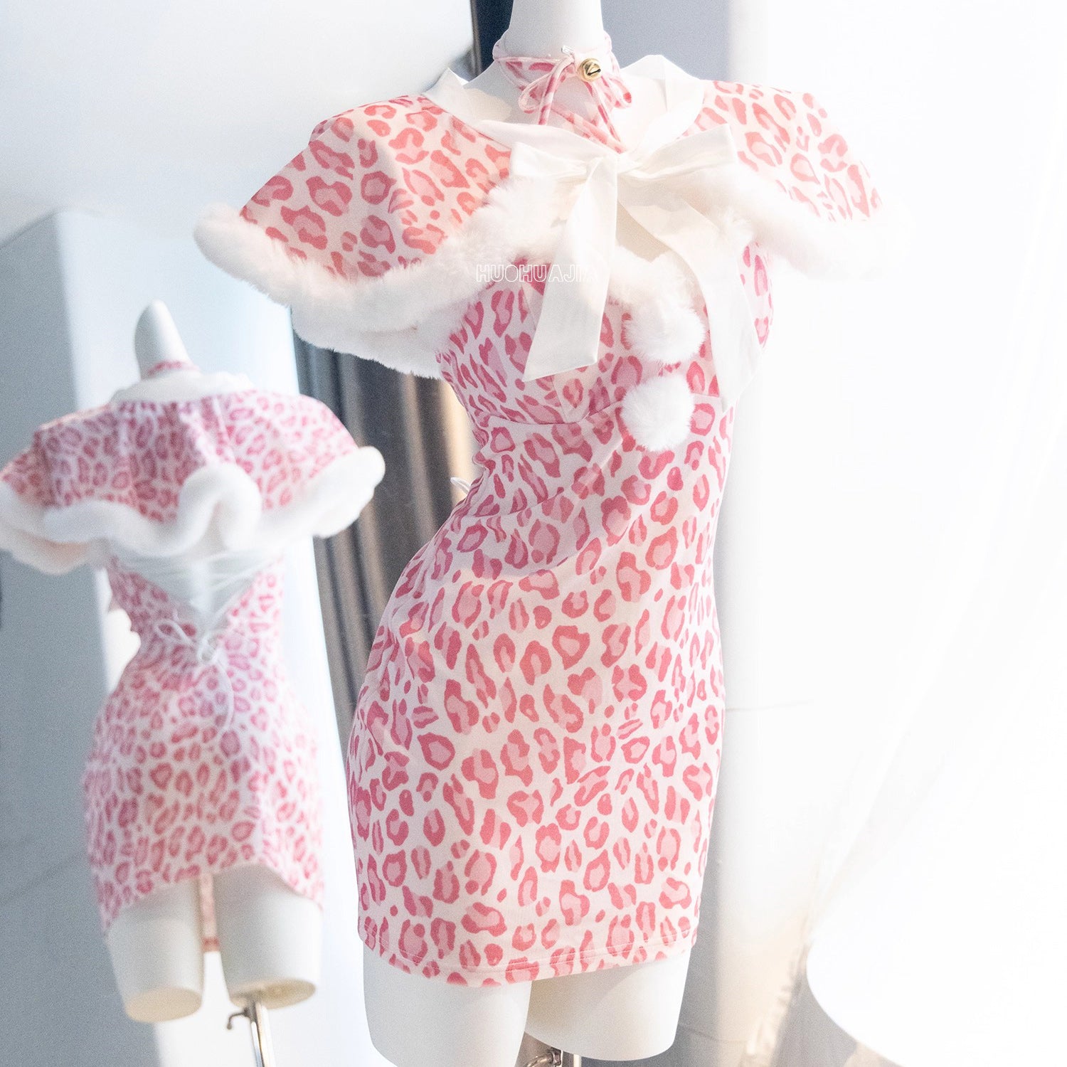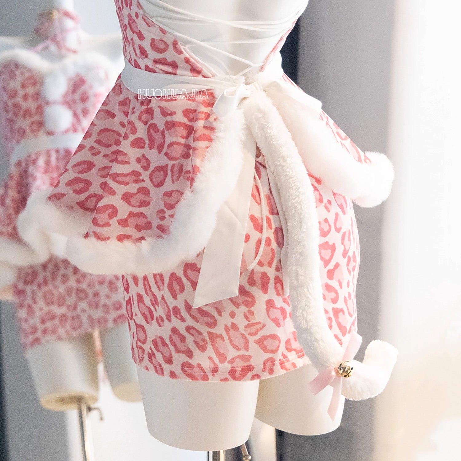 もこもこネコ耳ピンクレオパードセクシーワンピースコスチューム【火華家】
