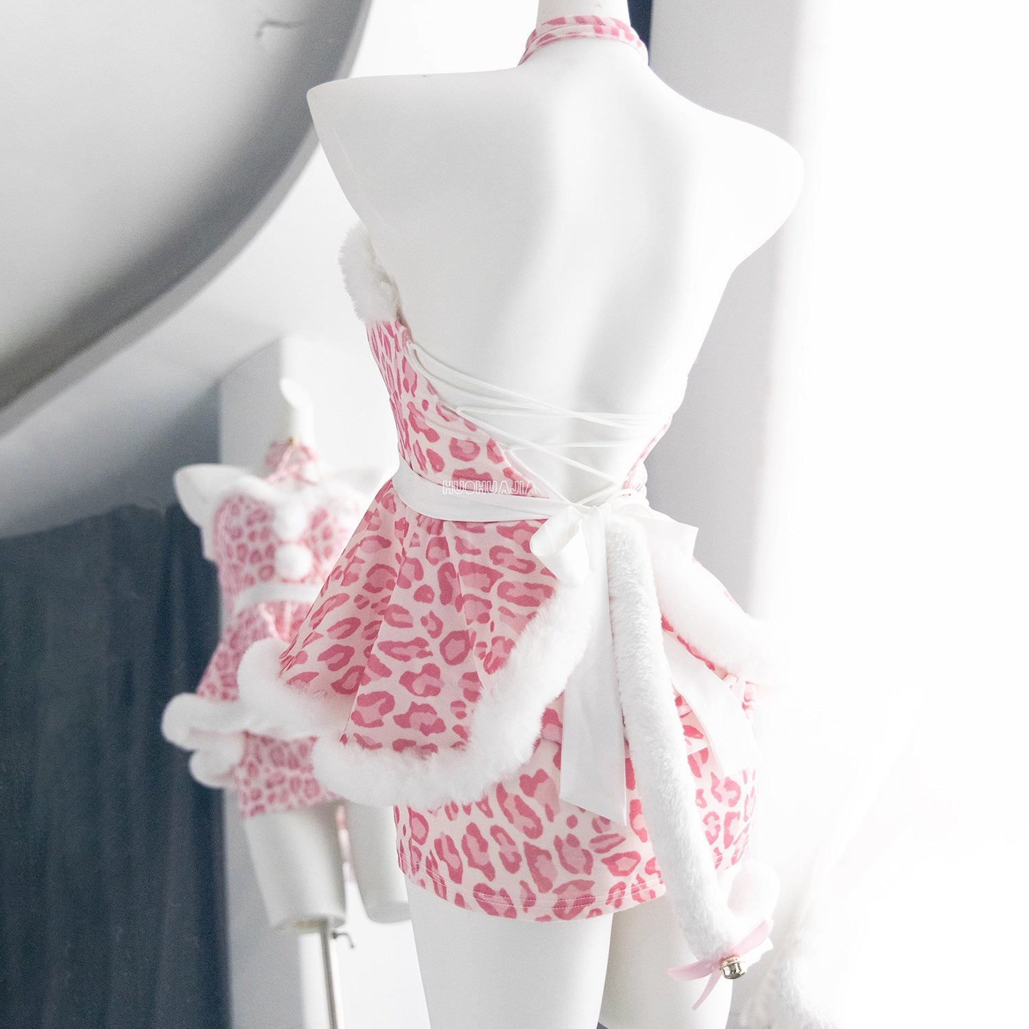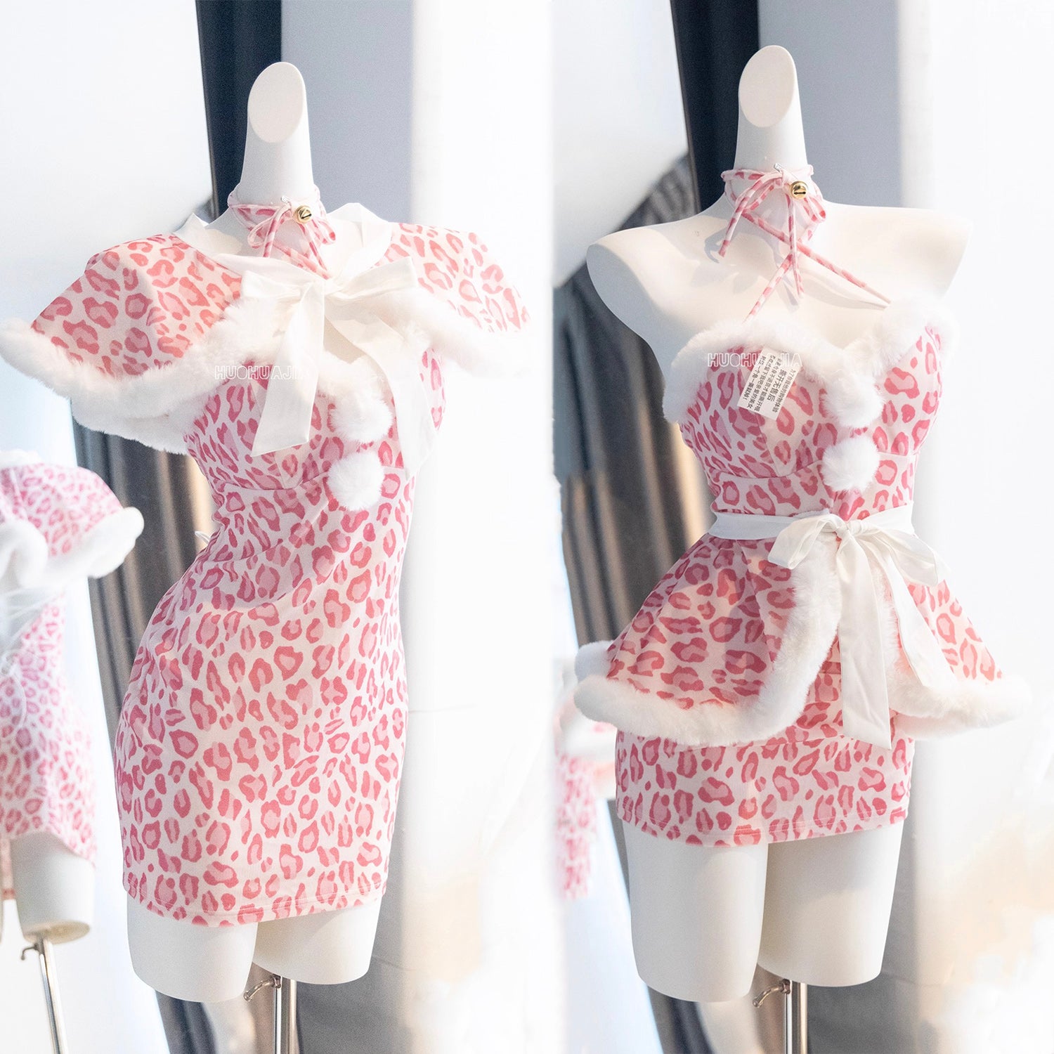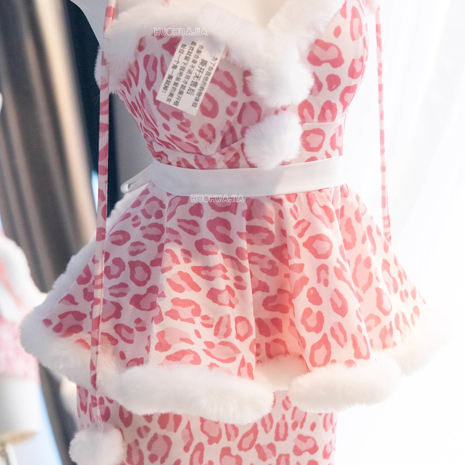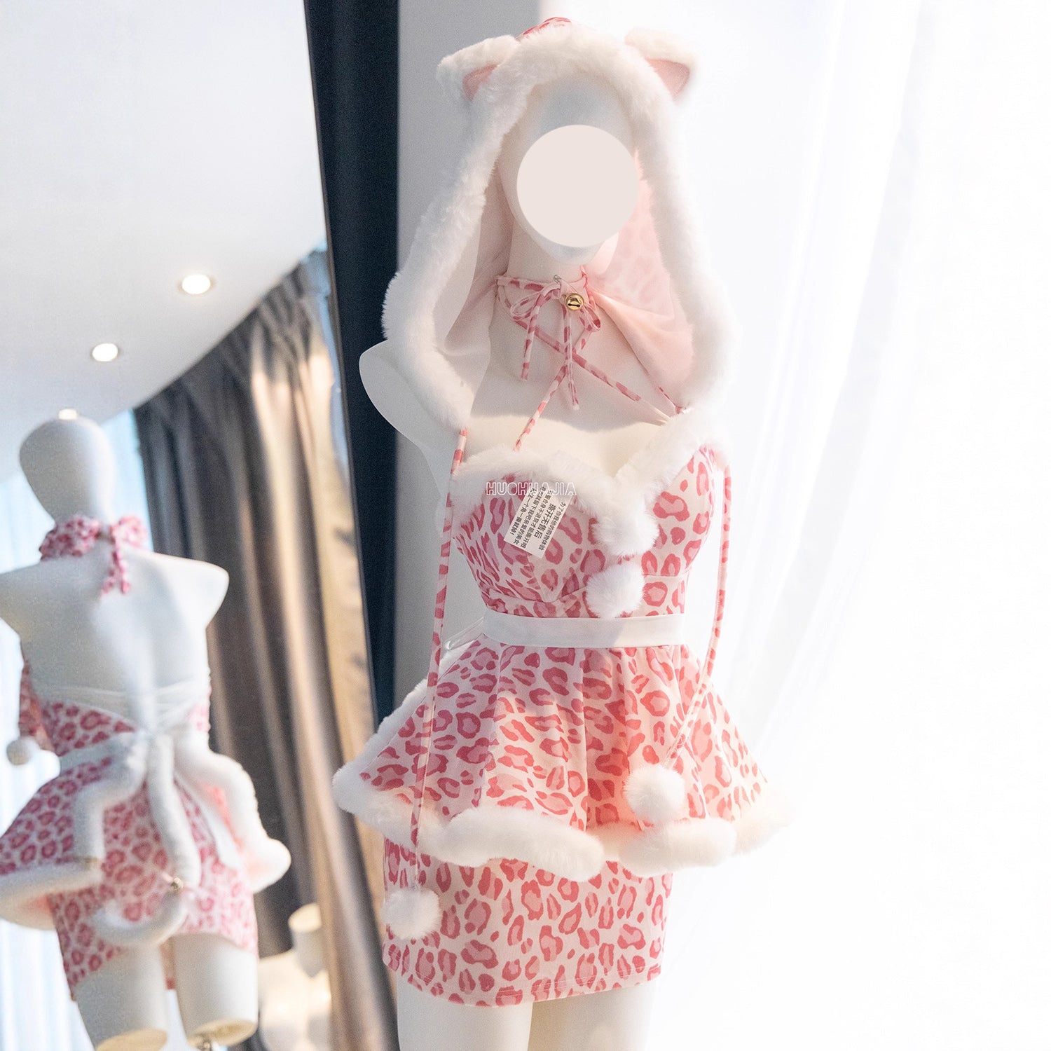 もこもこネコ耳ピンクレオパードセクシーワンピースコスチューム【火華家】