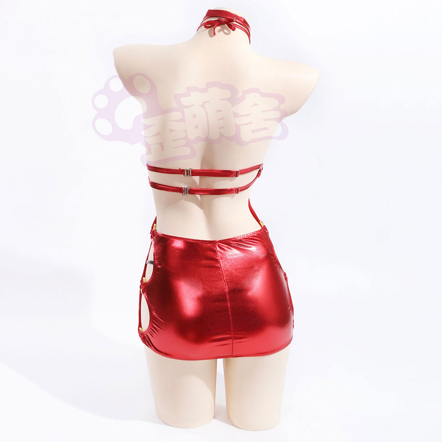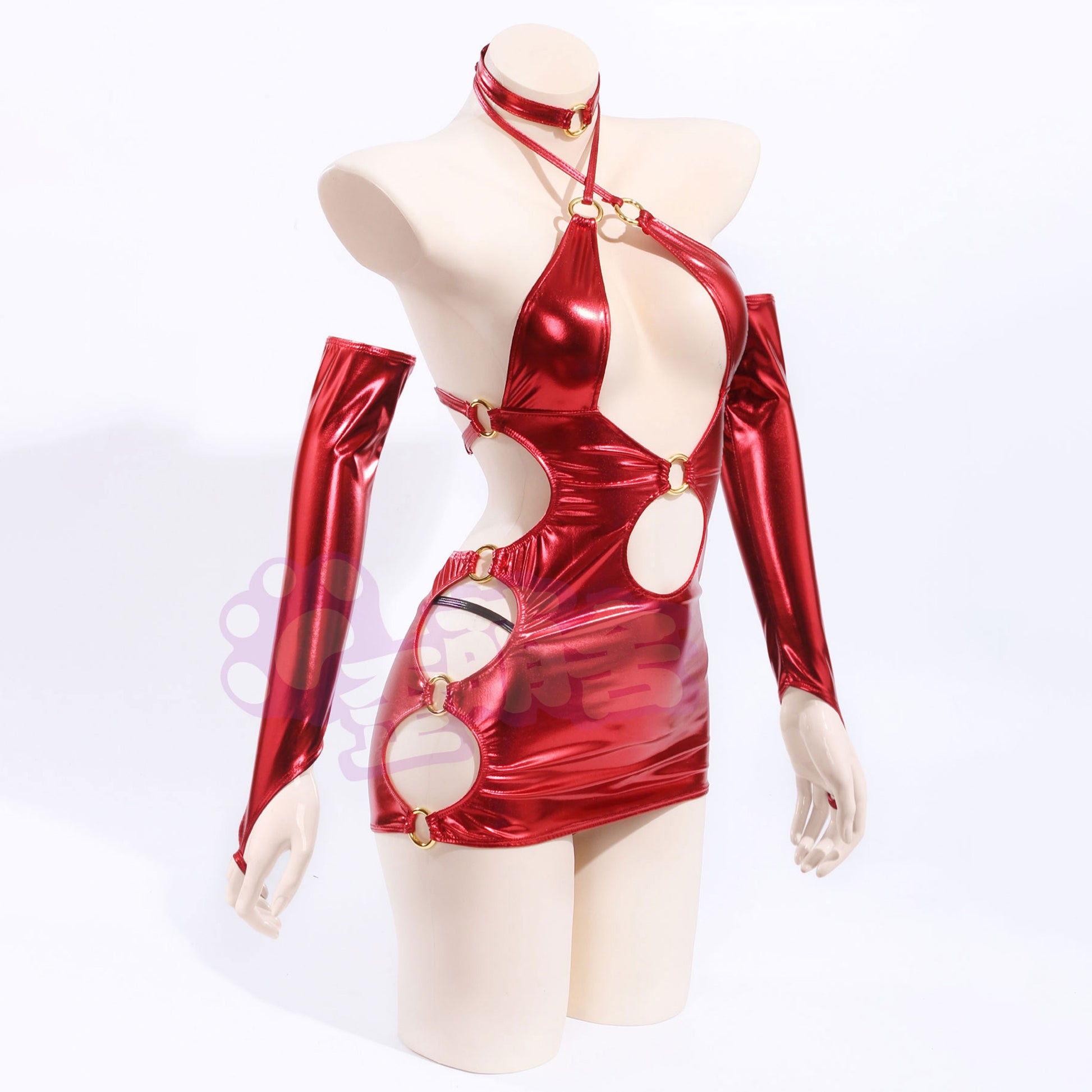 左藤空気ケガレボシ同人のツヤツヤと妖艶に輝きアダルティな印象を与えるエナメル素材で、サイドに丸くカットした穴から素肌を晒したミニ丈ワンピースです!