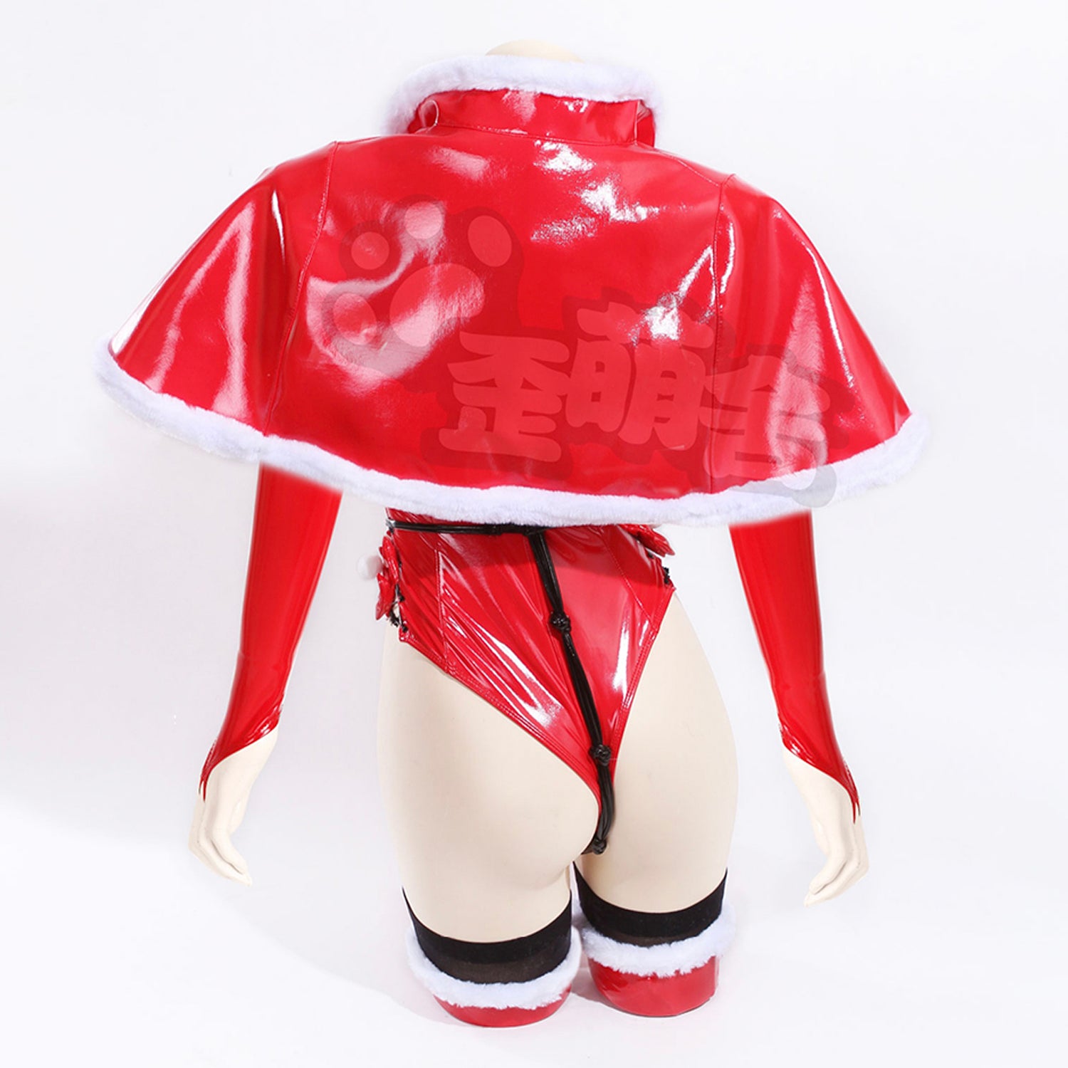艶やかなエナメルハイレグレオタードサンタガールコスプレ マント付き ボンデージストラップ【歪萌舍】