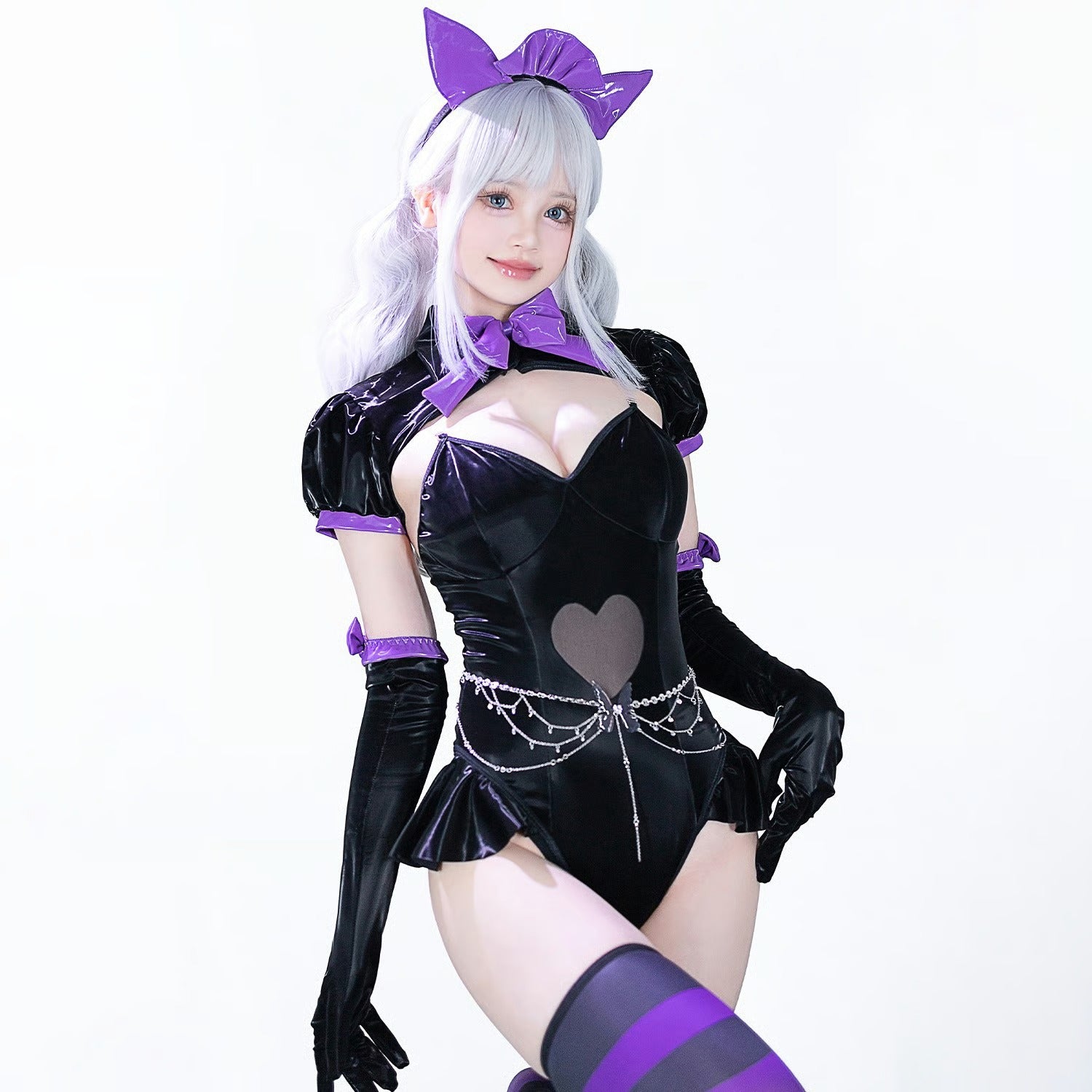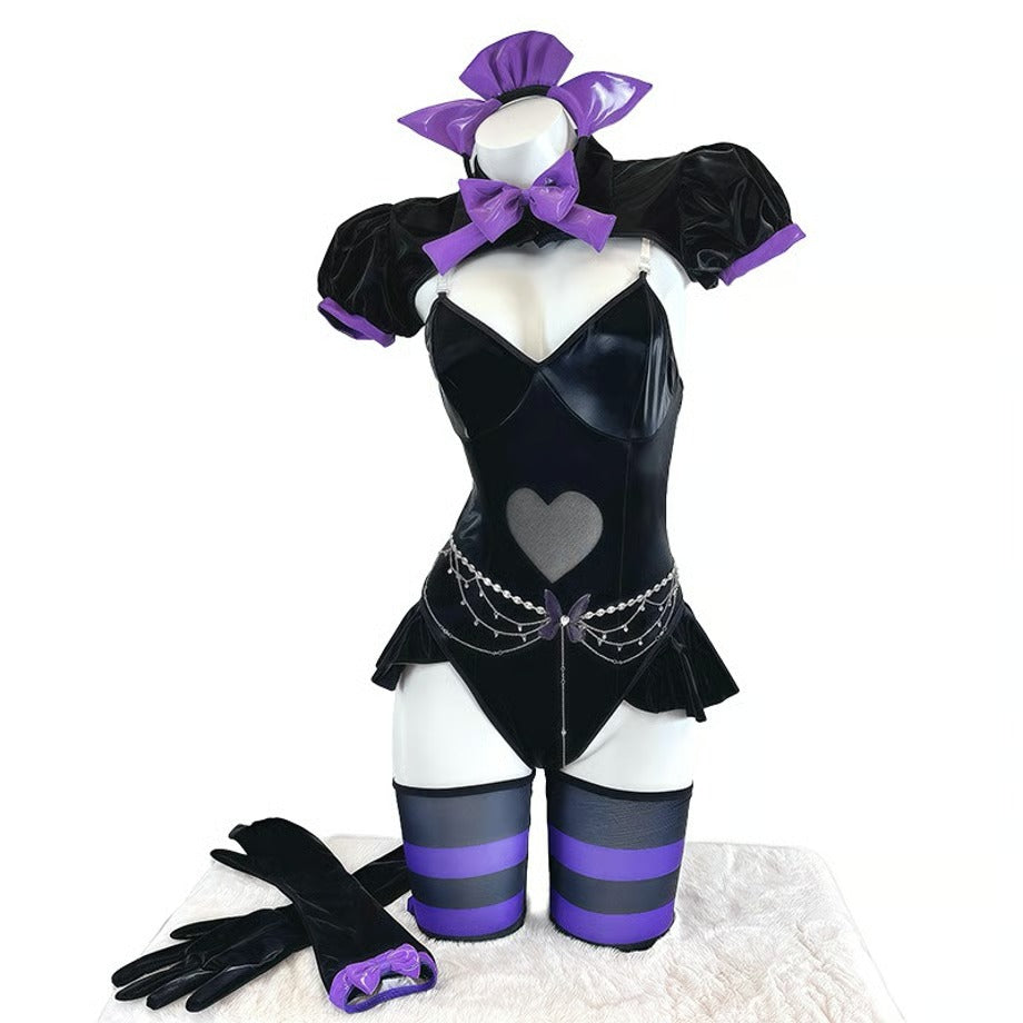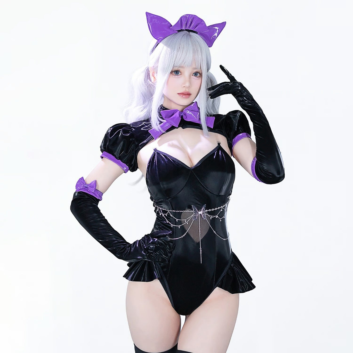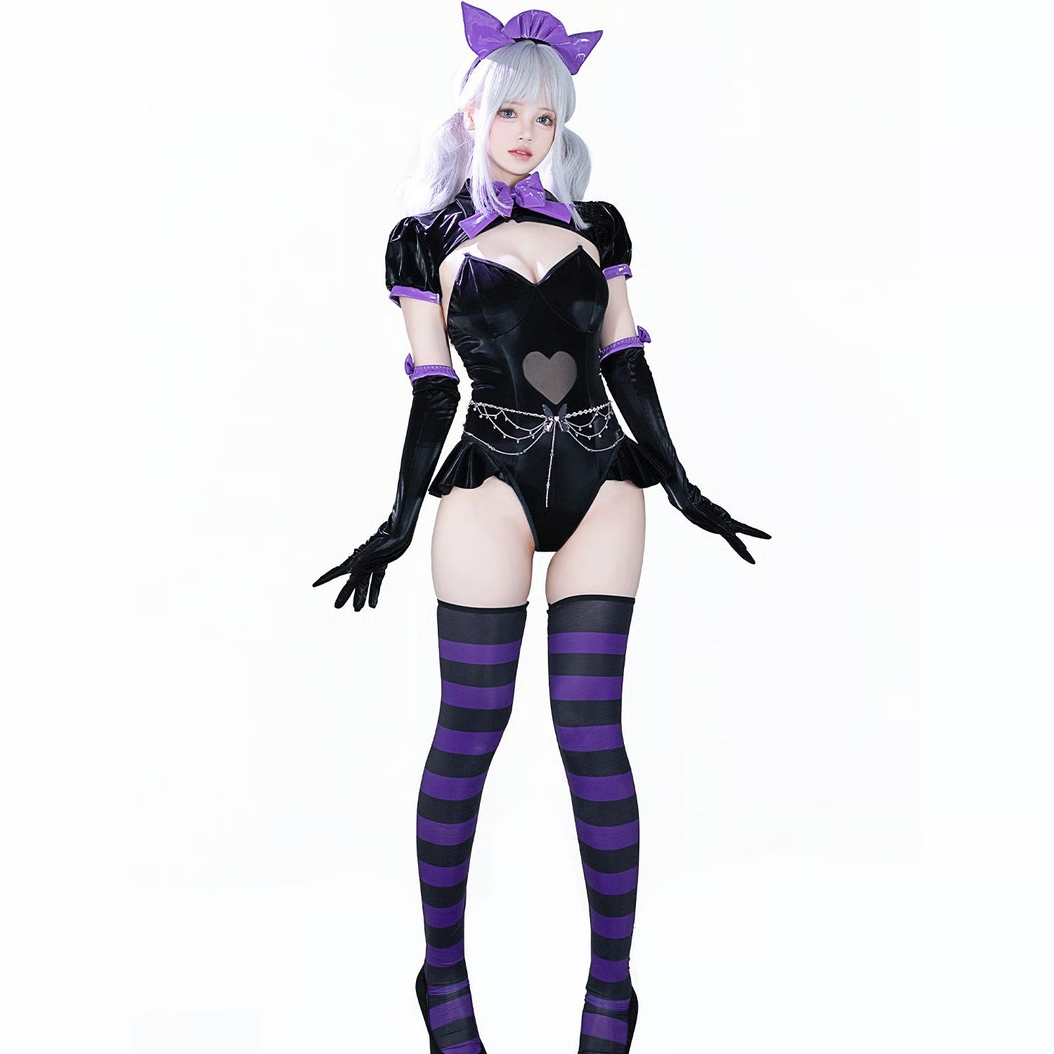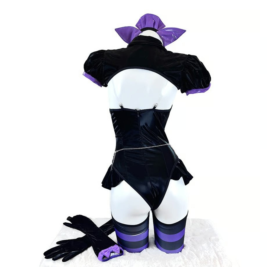 ゴシックロリータ風セクシーハイレグエナメルレオタードコスプレ 黒×紫【BOLOLI】
