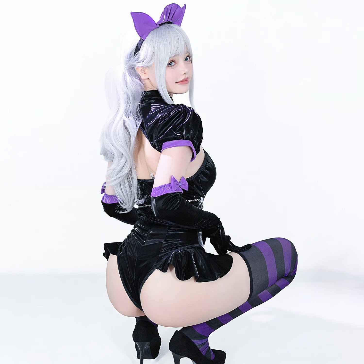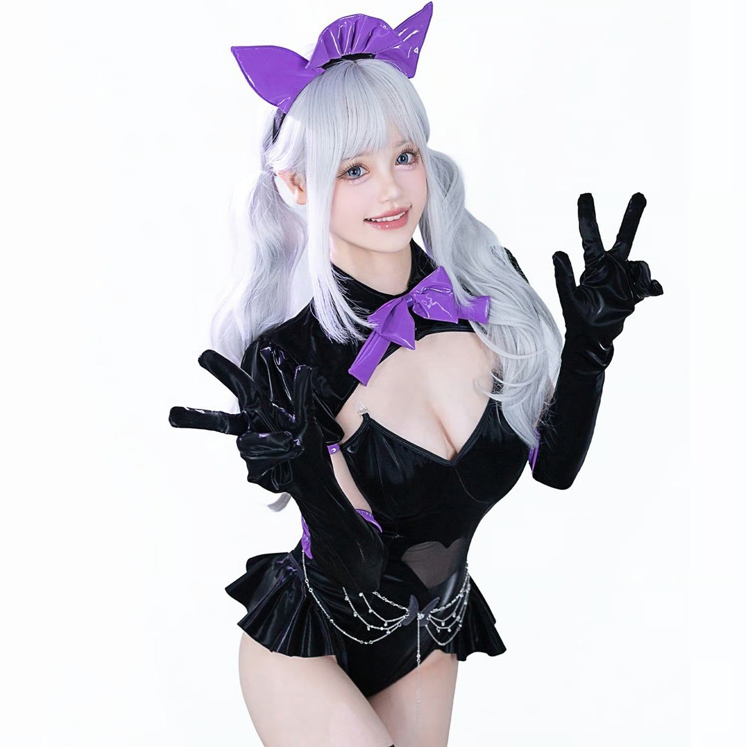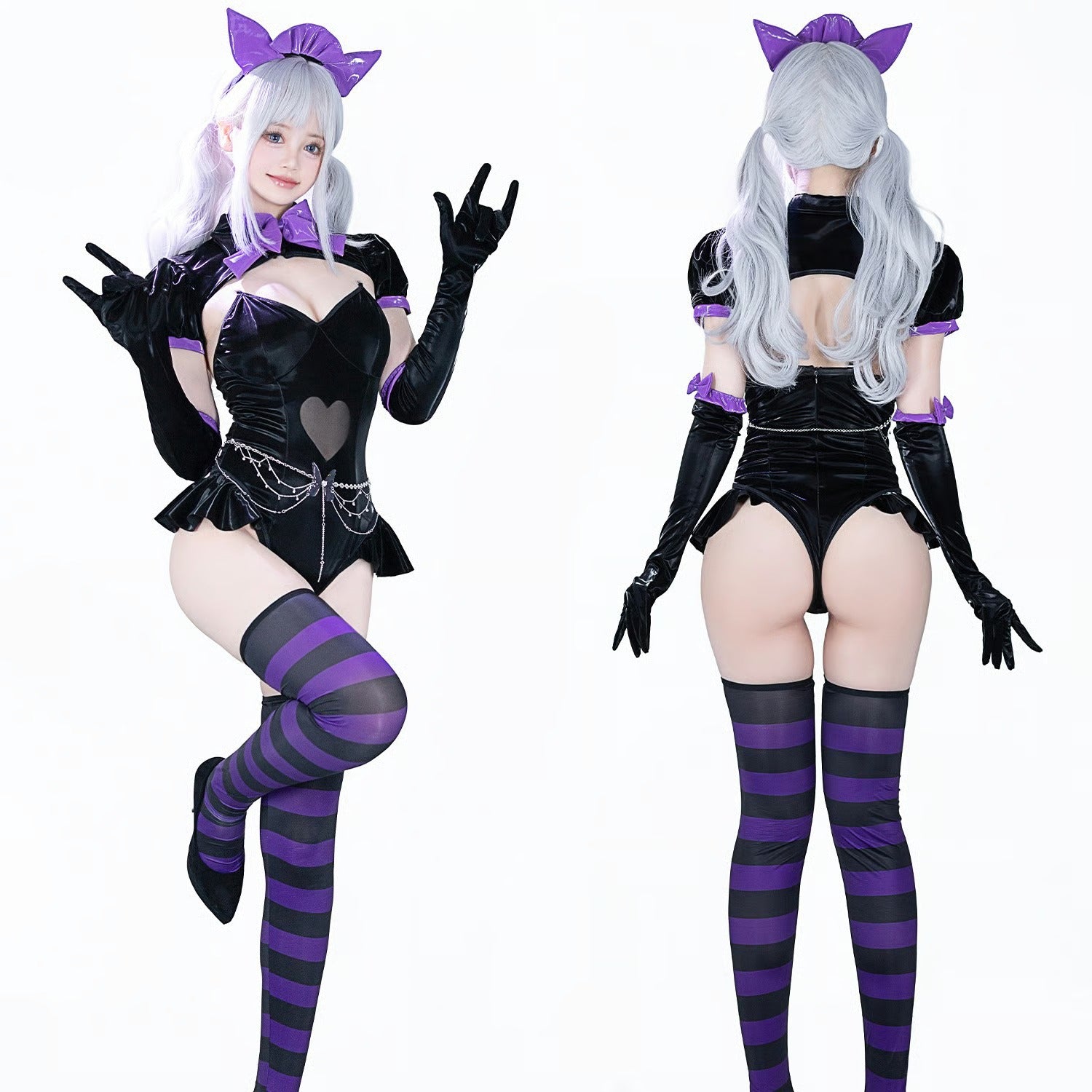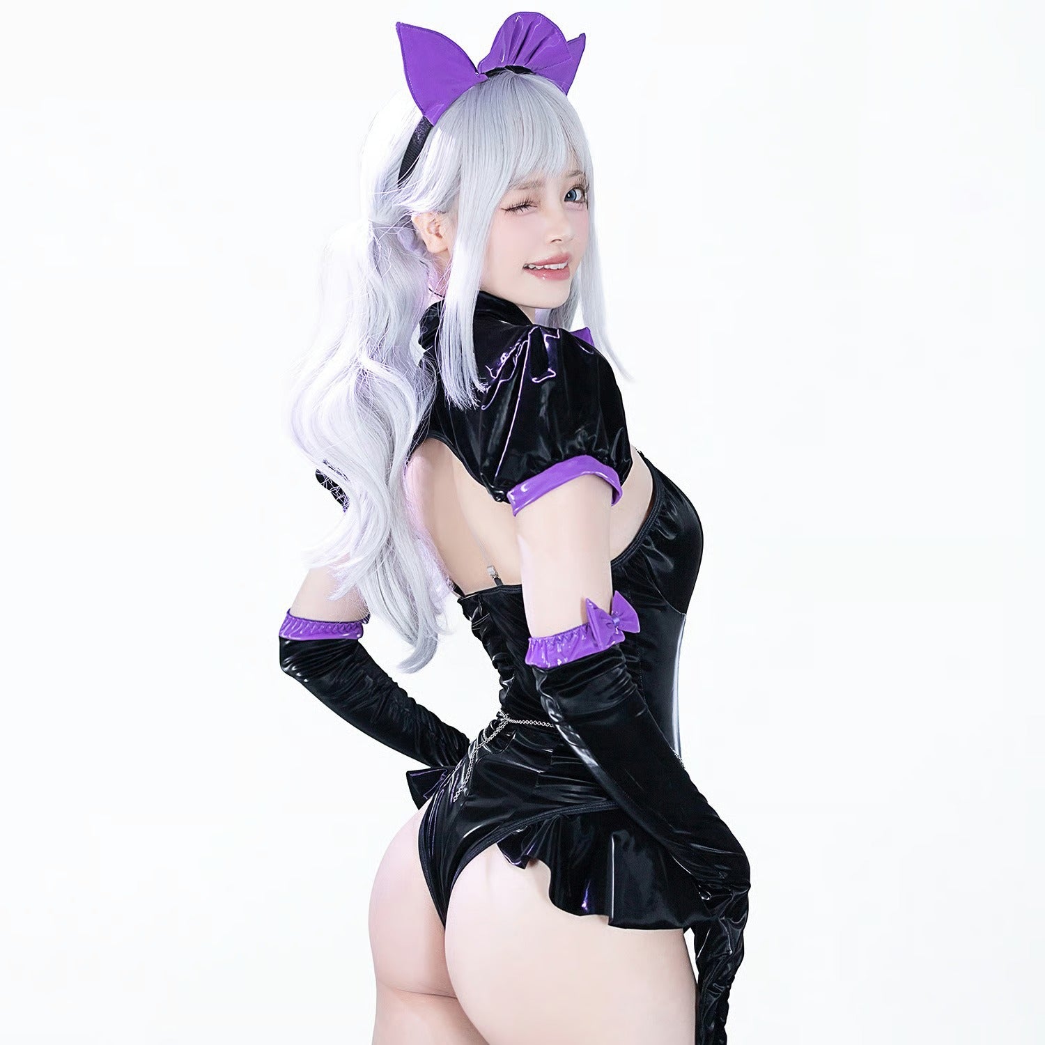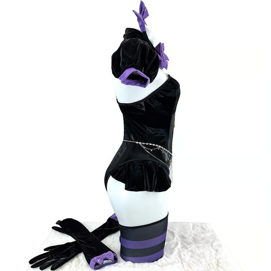 ゴシックロリータ風セクシーハイレグエナメルレオタードコスプレ 黒×紫【BOLOLI】
