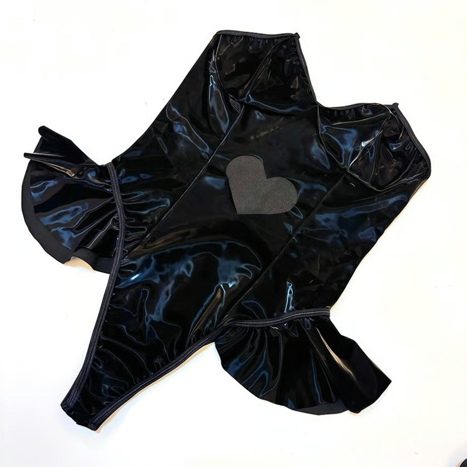 ゴシックロリータ風セクシーハイレグエナメルレオタードコスプレです!