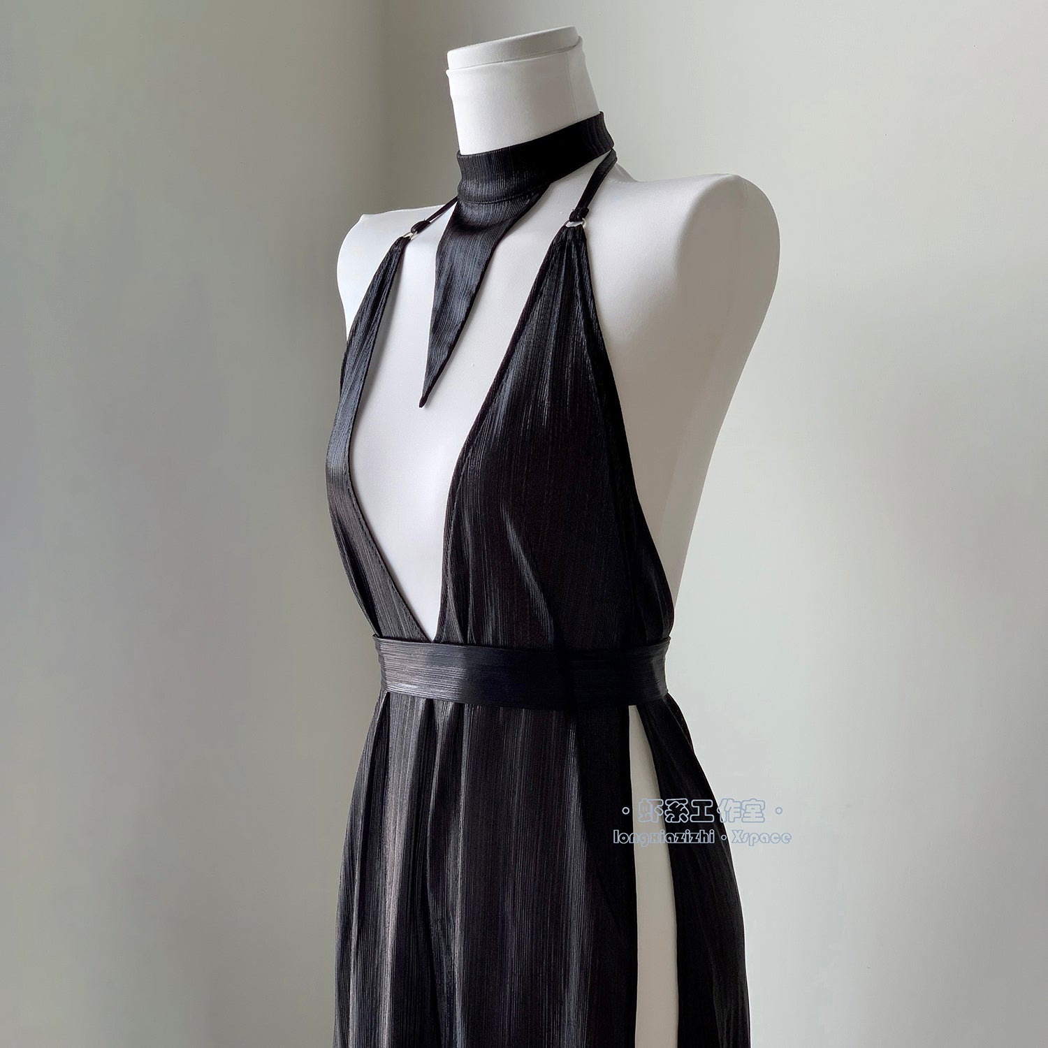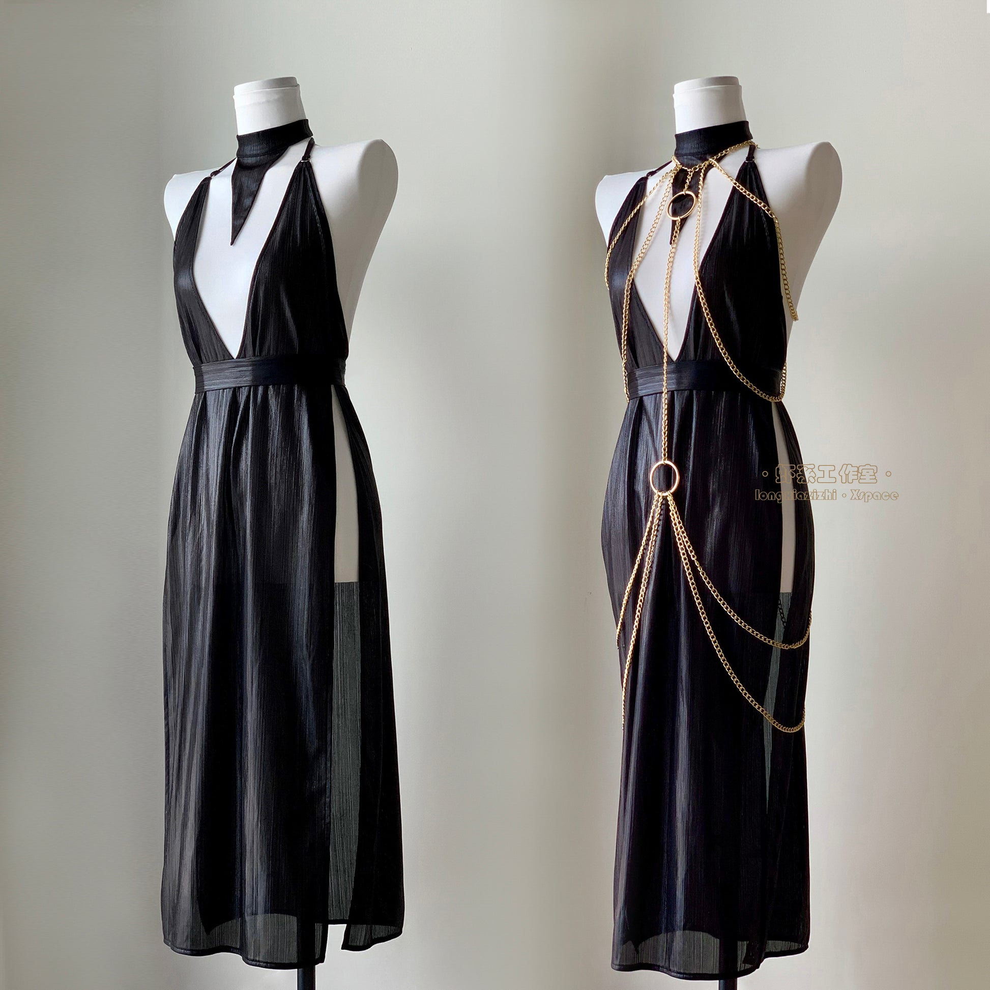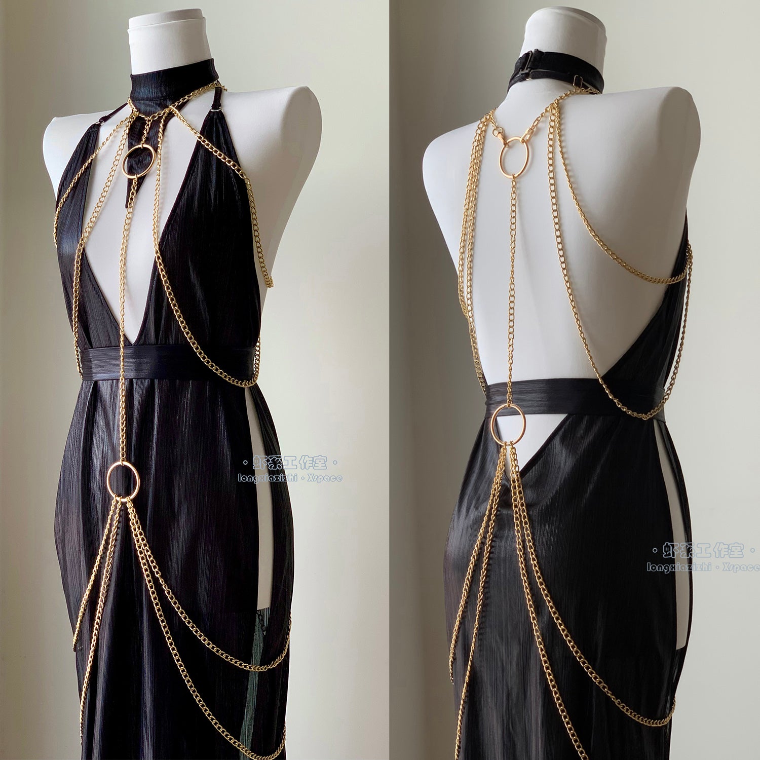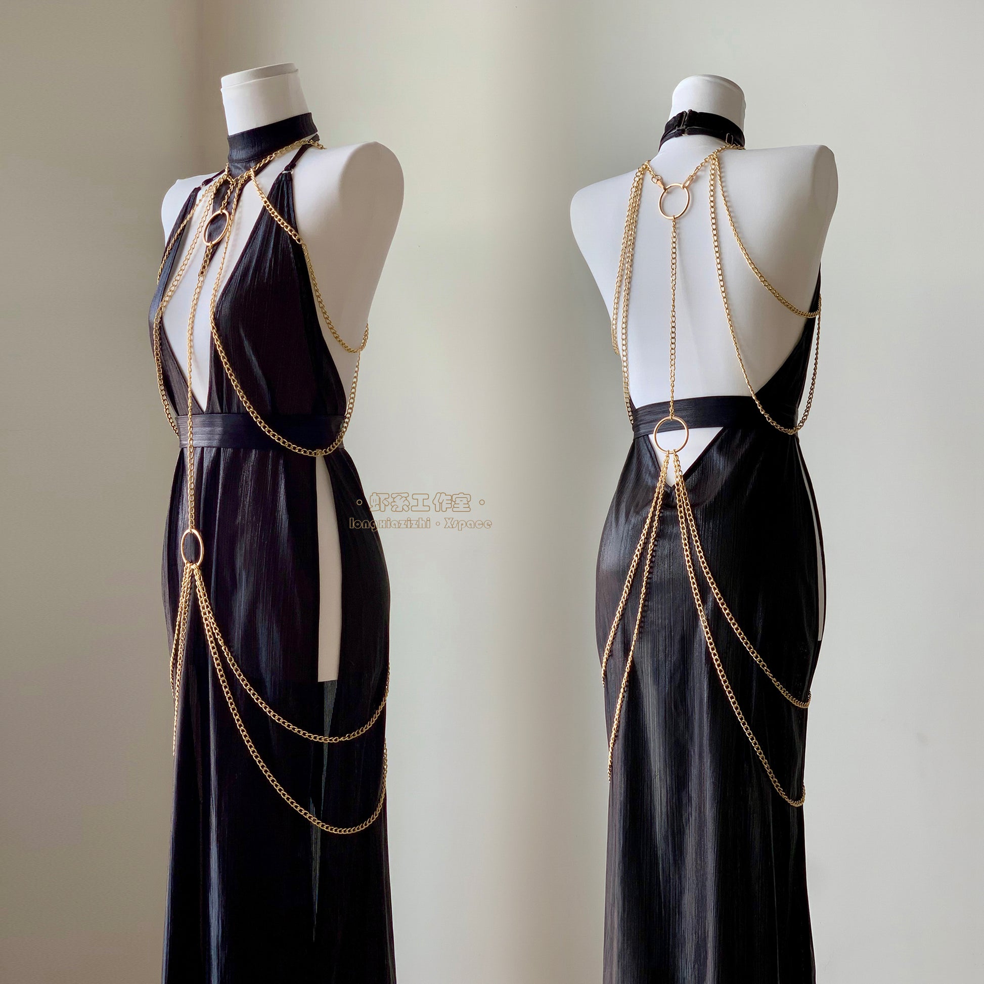 ボディチェーン付き高級感溢れたセクシーブラックワンピースです。