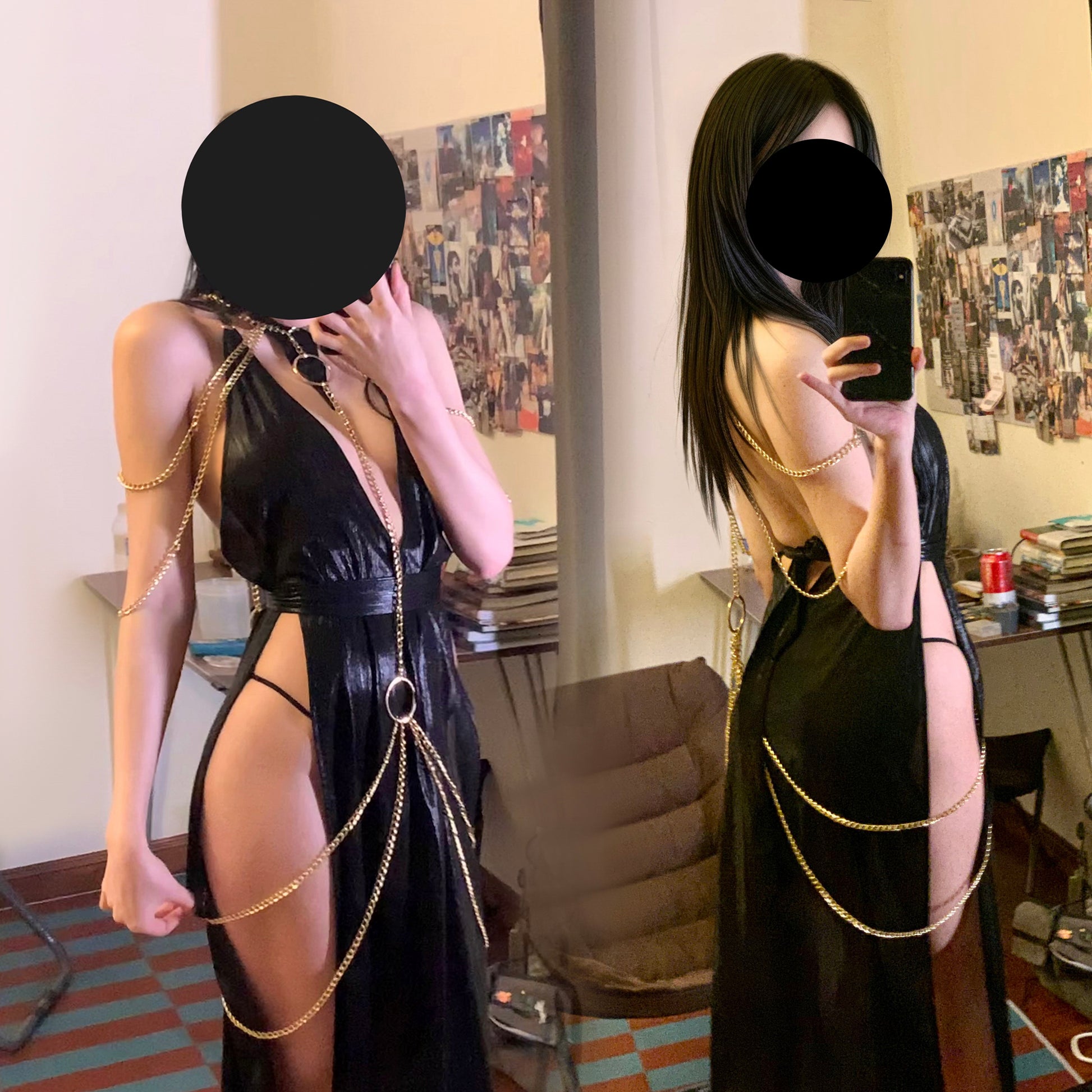 ボディチェーン付き高級感溢れたセクシーブラックワンピース4点セット【エビスタジオ】