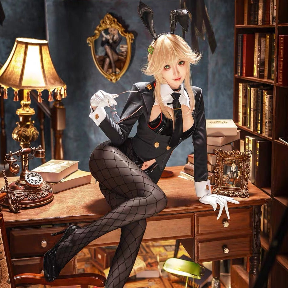 ネクタイ・手袋・網タイツ・うさ耳カチューシャまで細部にこだわり、キャラクターの雰囲気をそのまま表現しました。