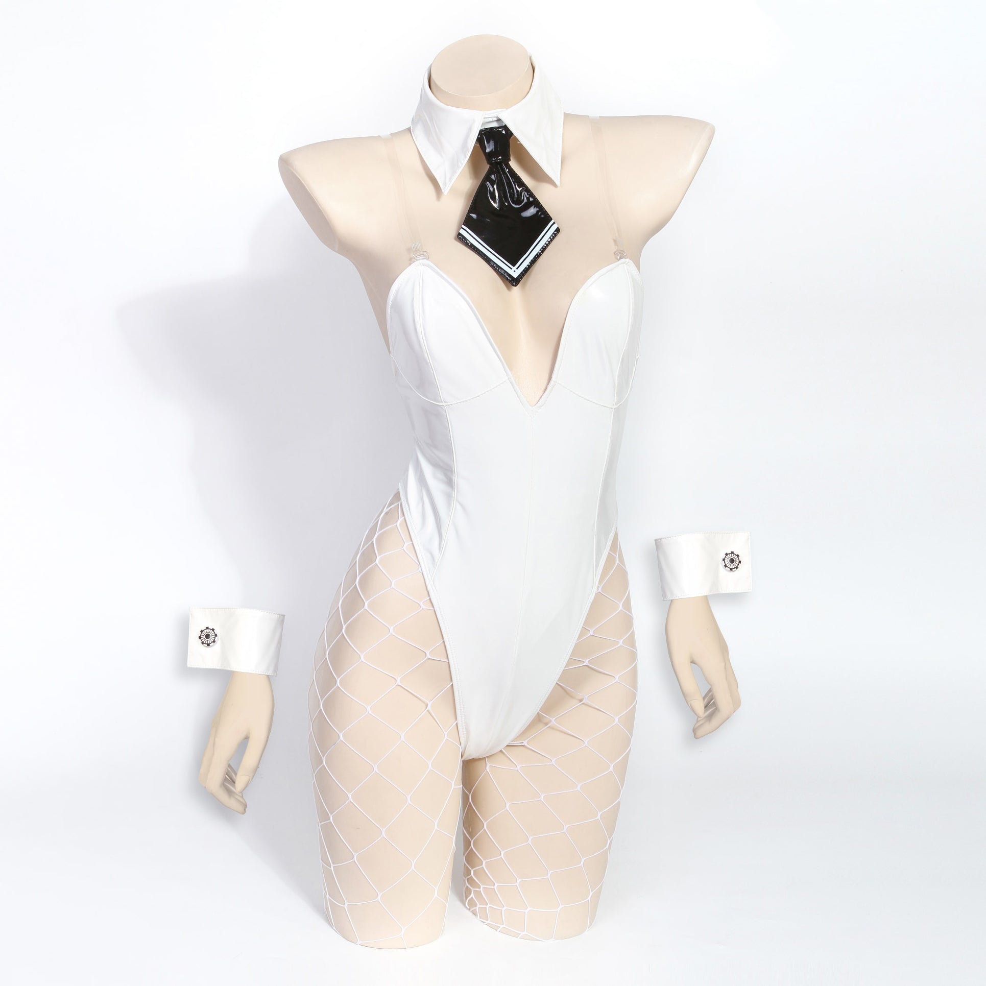 エナメル素材が光沢感を放ち、体のラインを美しく引き立てるレオタードデザインに仕上げた束縛バニーガールコスプレです!
