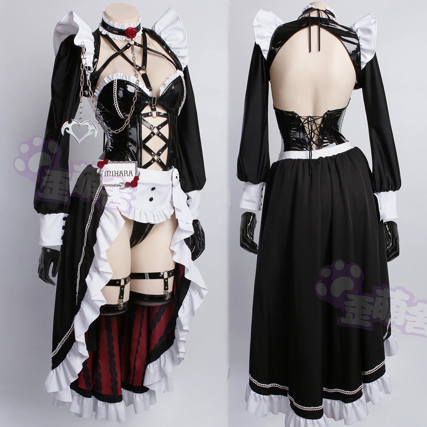 NIKKE ボンデージ風ミハラメイドカフェコスプレ エナメルロングメイドコスプレ【歪萌舍】