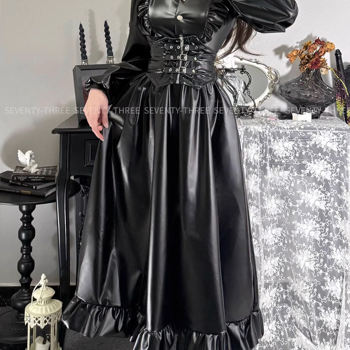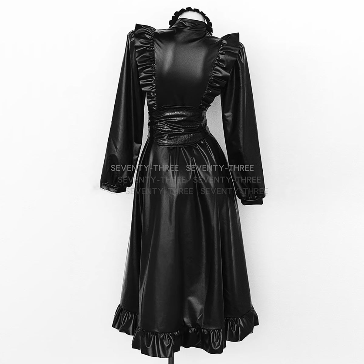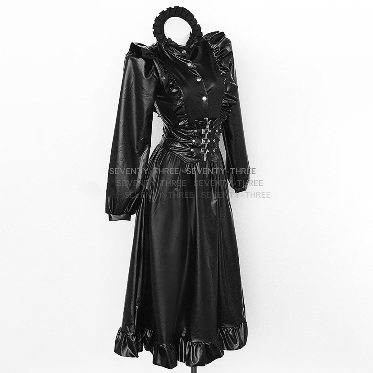 ゴシック地雷系光沢PUレザーのロング丈ダークメイドコスプレ【SEVENTY-THREE】