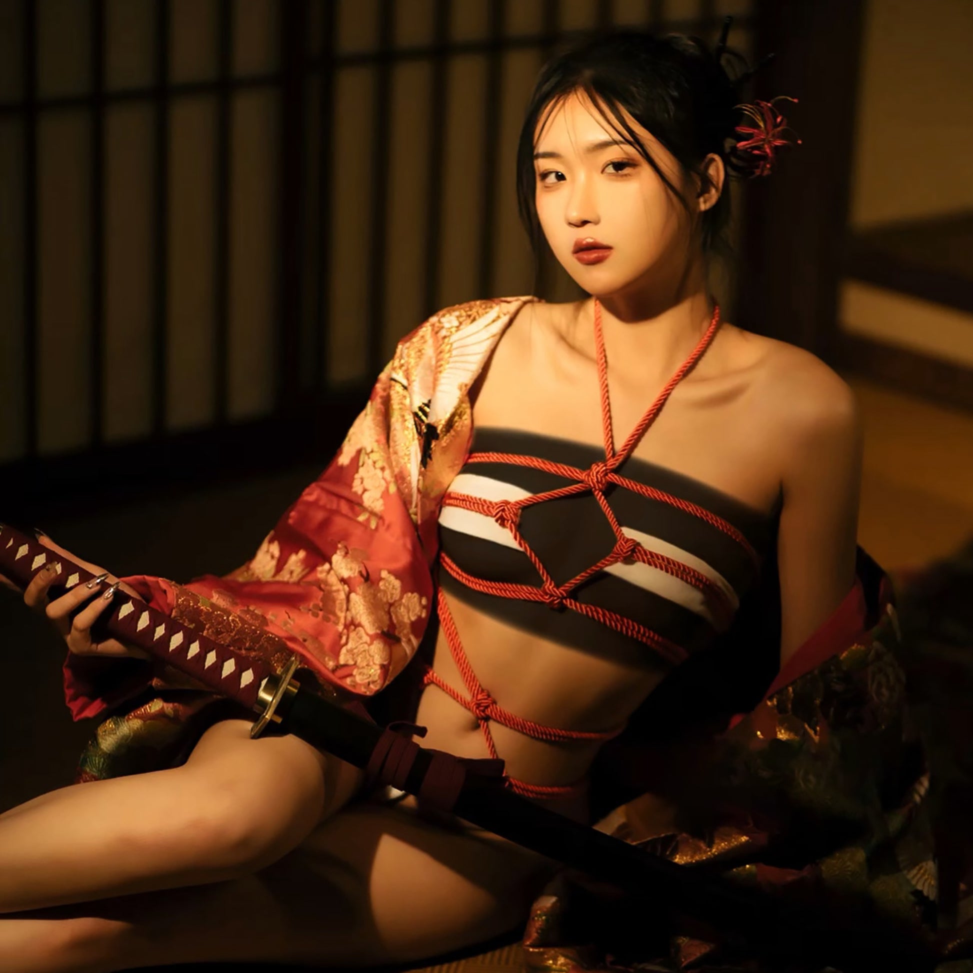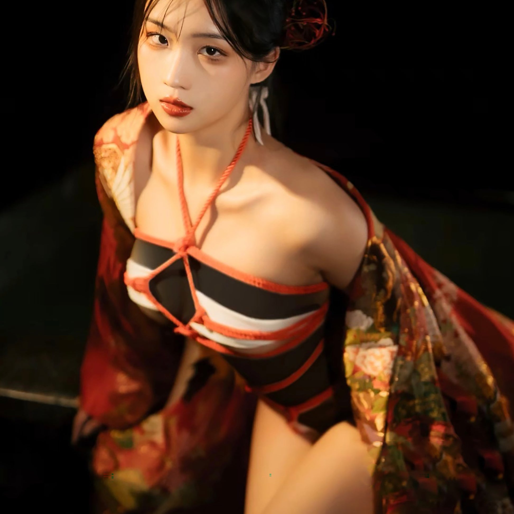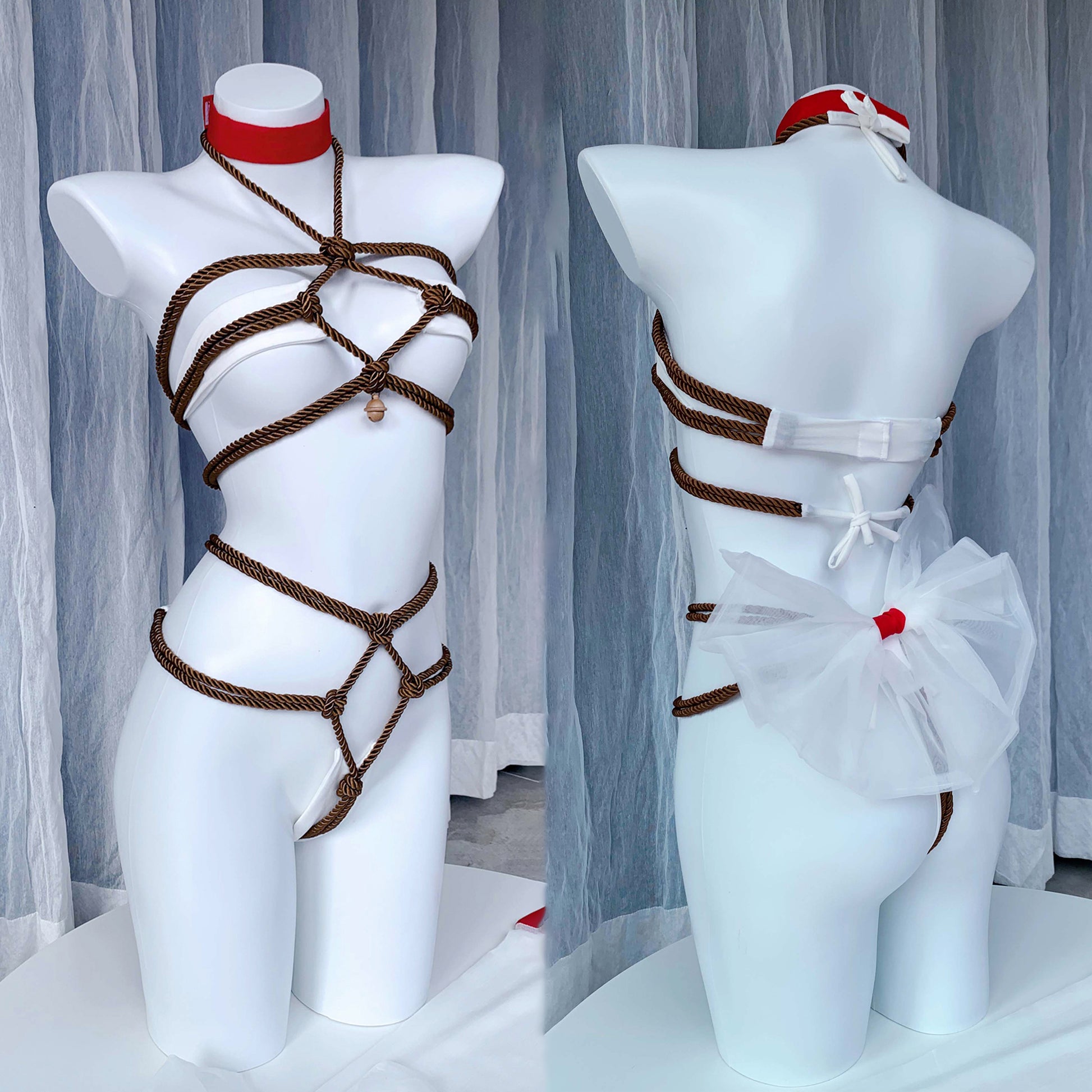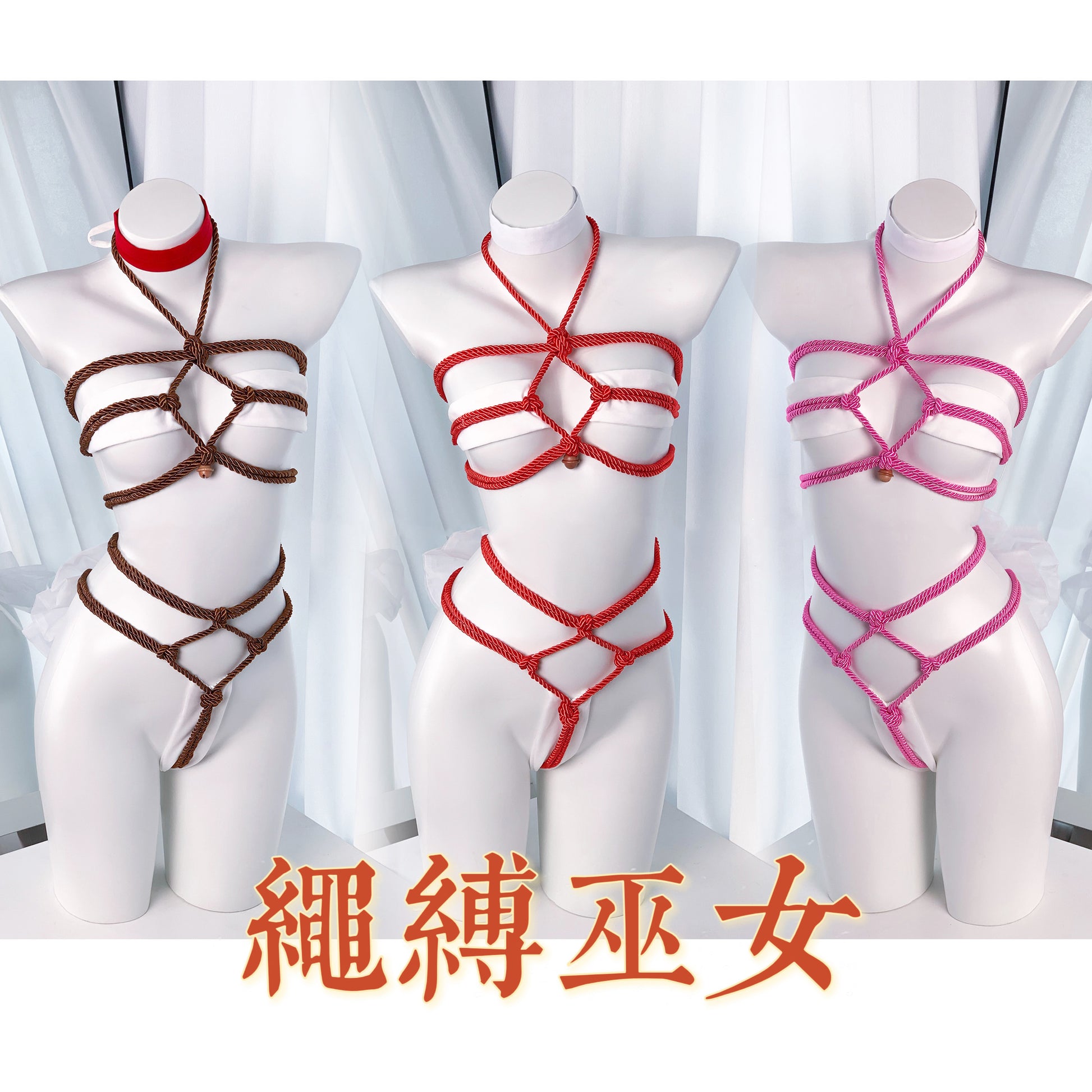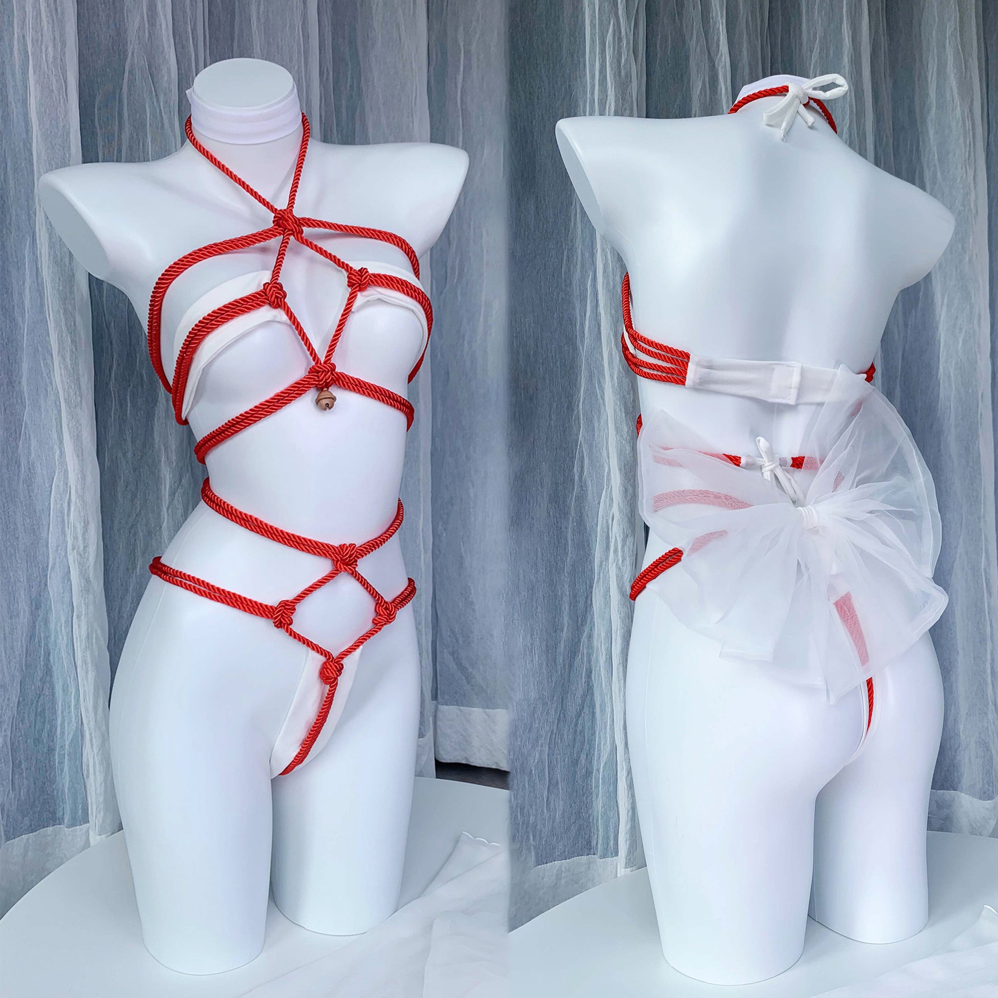 誰でも簡単に着用できる菱縄縛りビキニセットアップ 巫女風緊縛ランジェリー【エビスタジオ】
