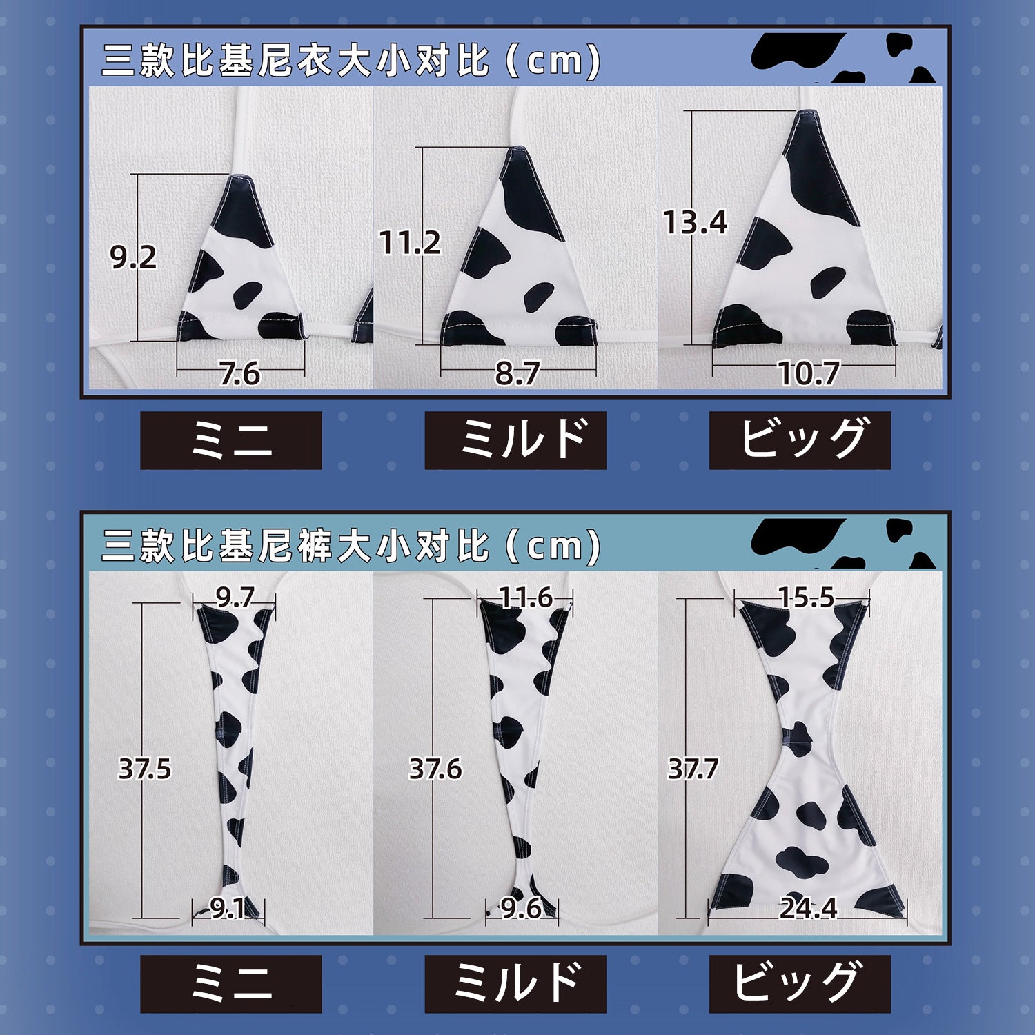 白×黒大胆な牛柄デザインの極小ビキニで、健康的でセクシーなボディラインを強調し、牛柄ビキニでセクシーに変身!