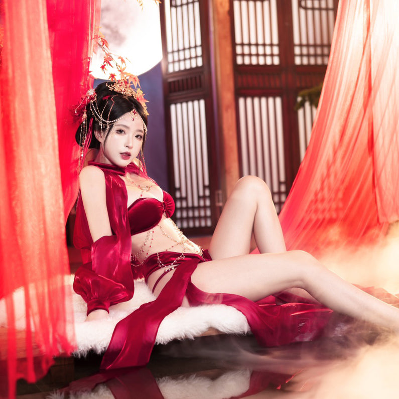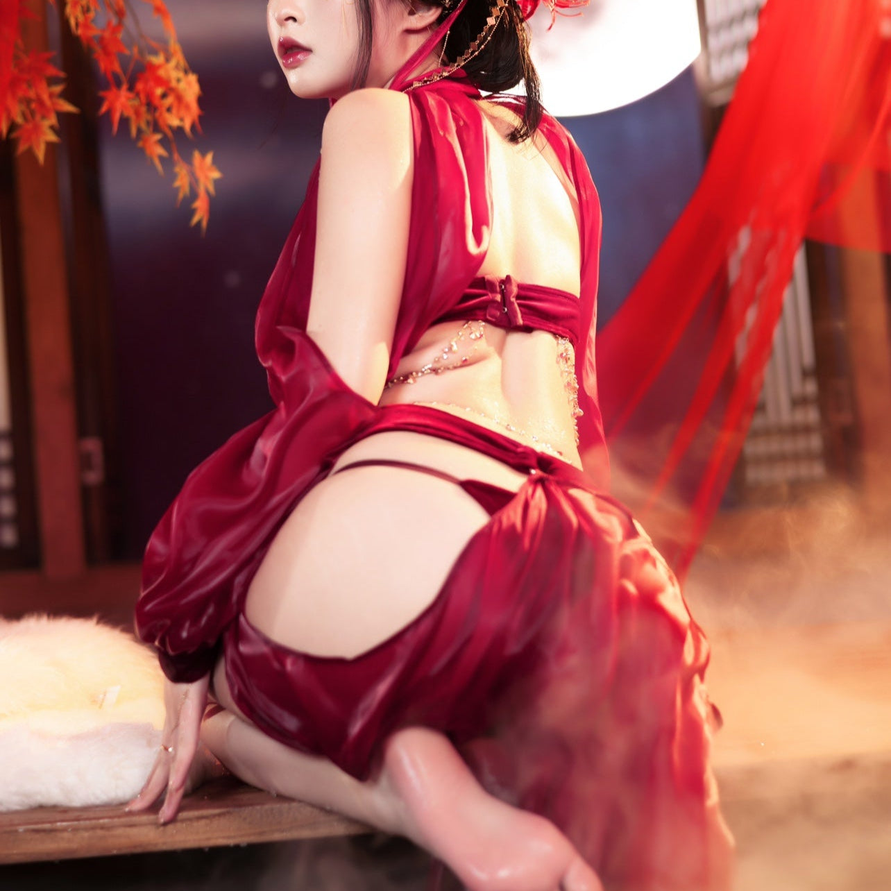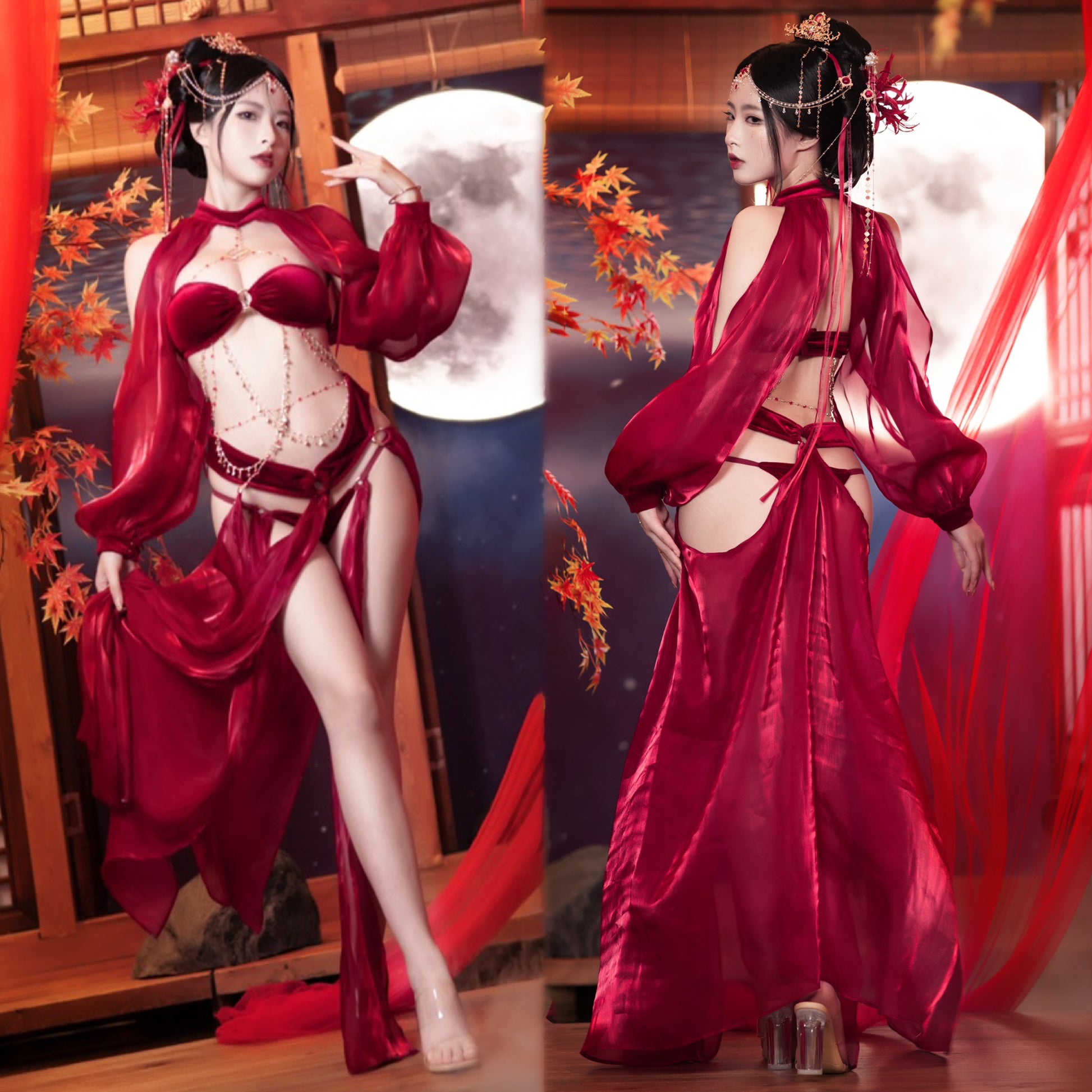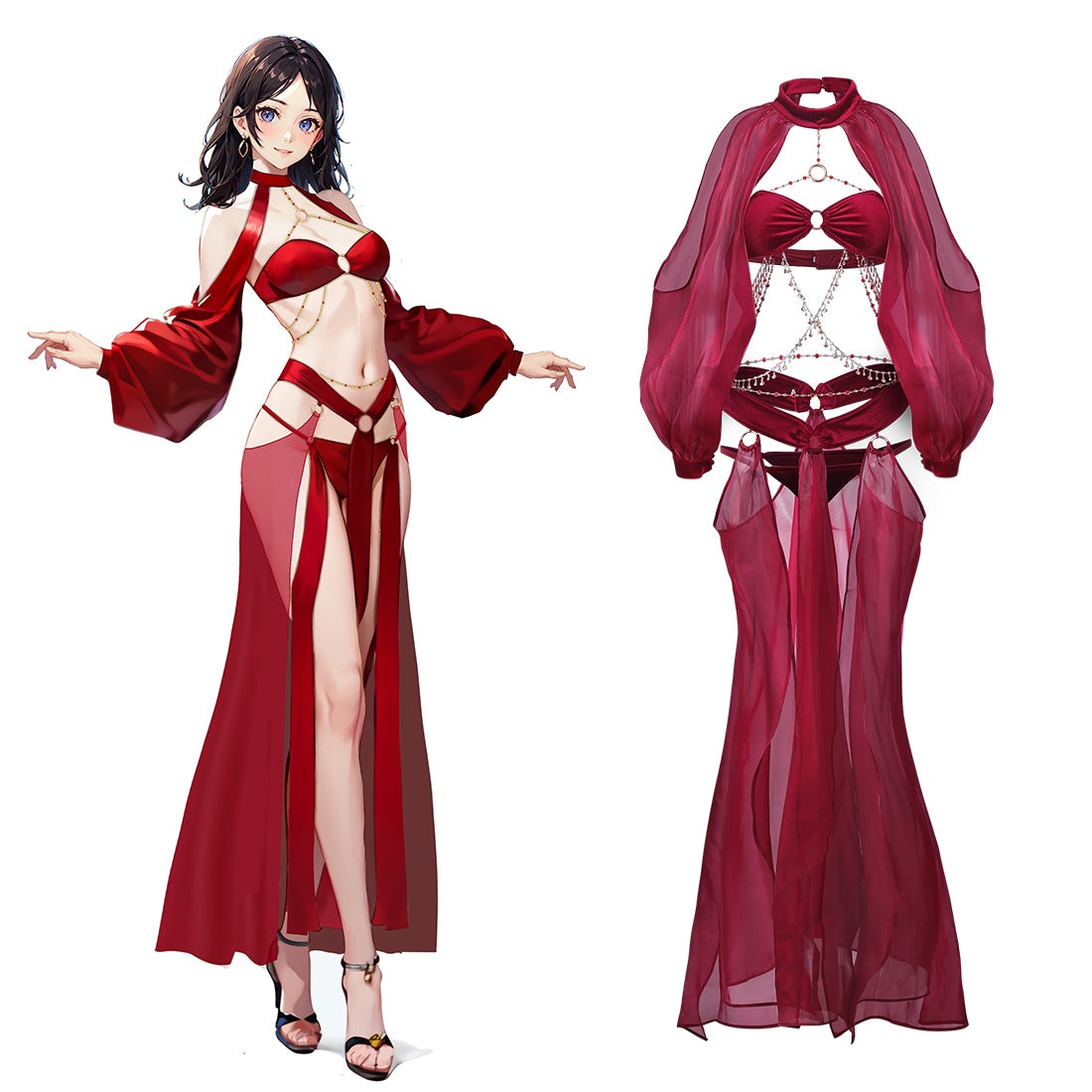 セクシーエキゾチック踊り子風ワインレッドドレスコスプレ【MoliTEA】