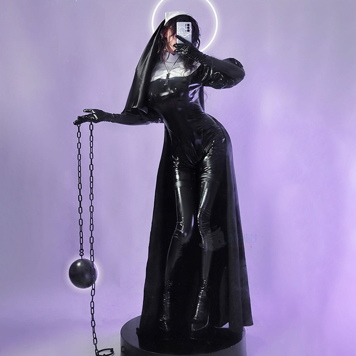 セクシー全身タイツエナメルシスターコスプレセット 黒【ChowbiexCosplay-FM】