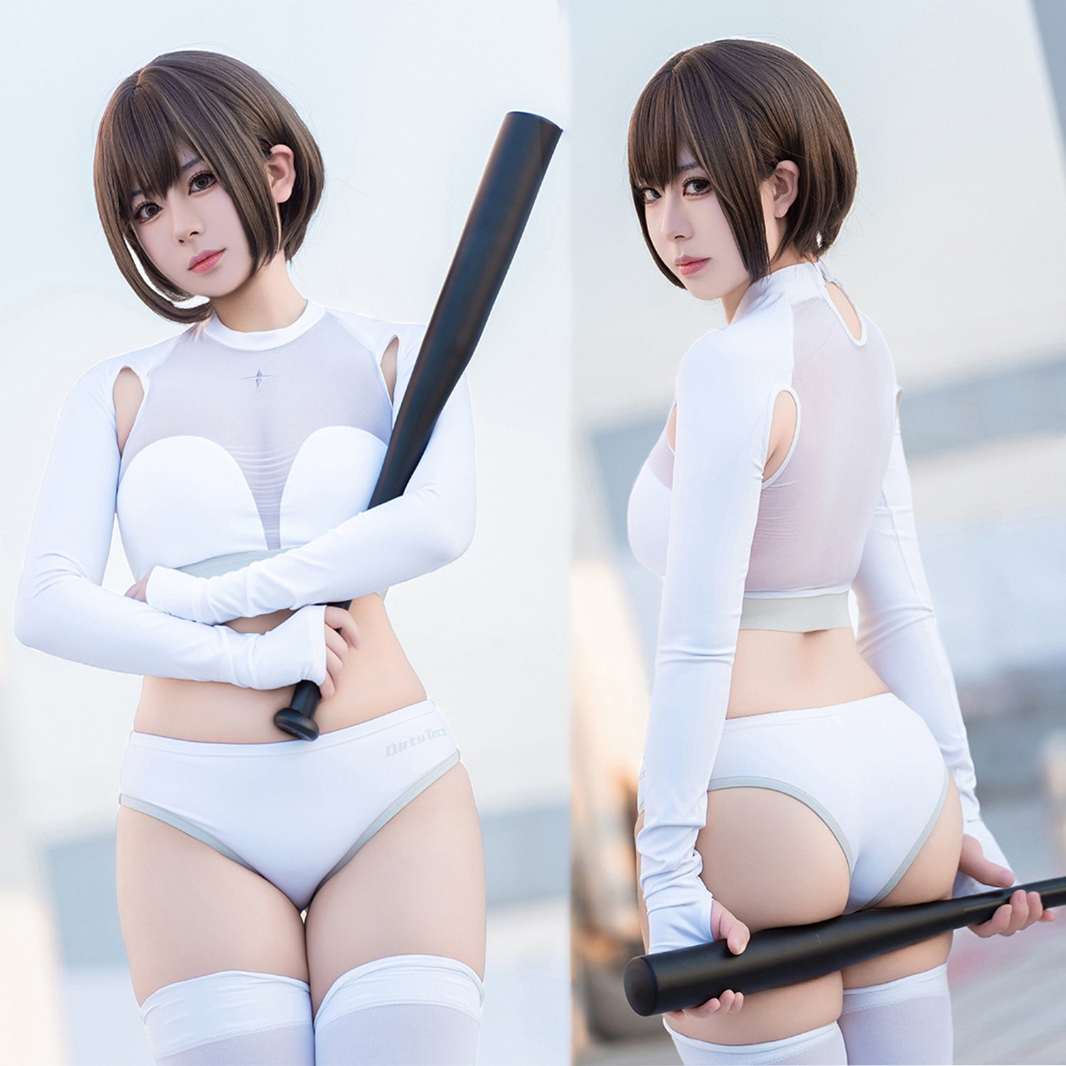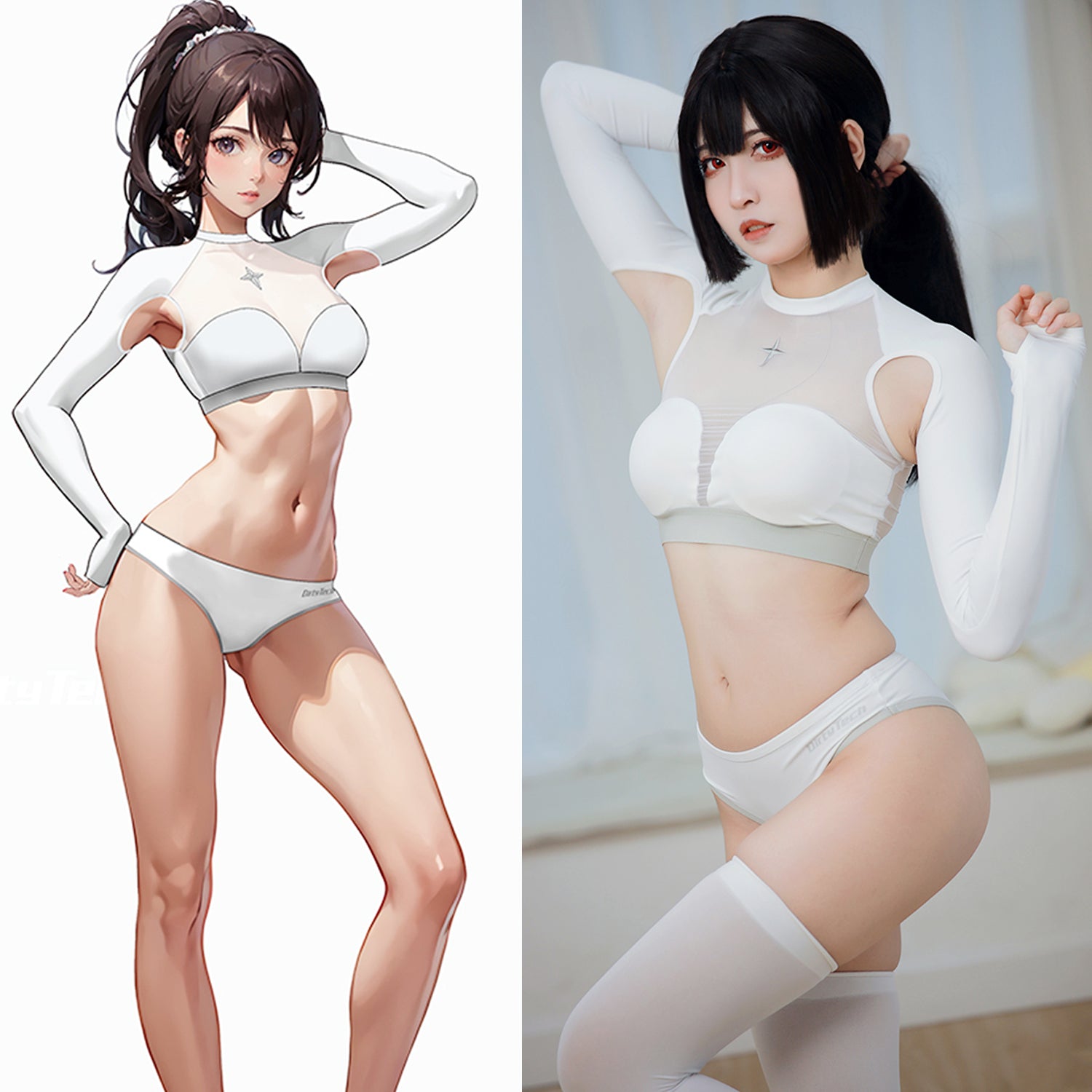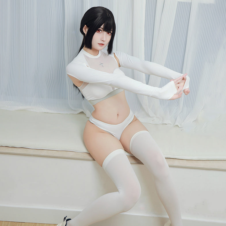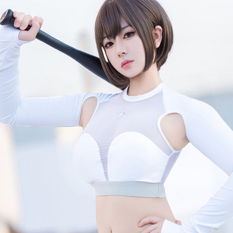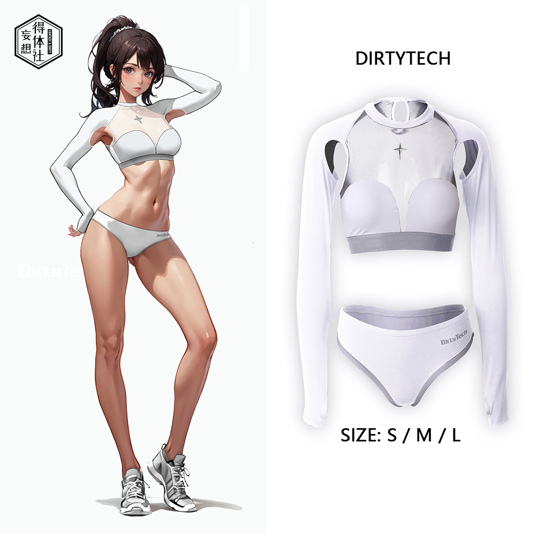 白鯨のエレメントの取り入れた脇下が露になった長袖セクシースポーツウェアです。