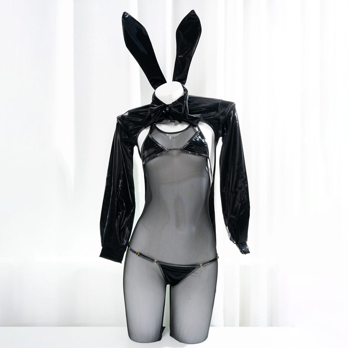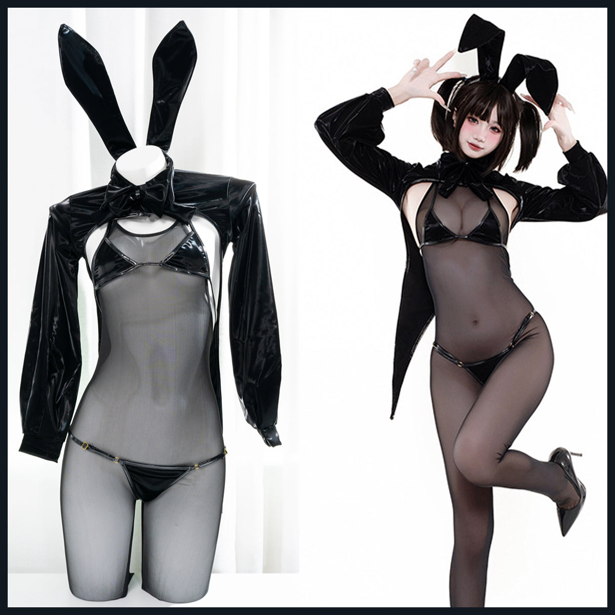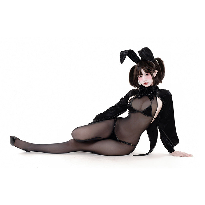 透け感たっぷりのセクシーな全身タイツ逆バニーコスプレ 燕尾ジャケット【BOLOLI】