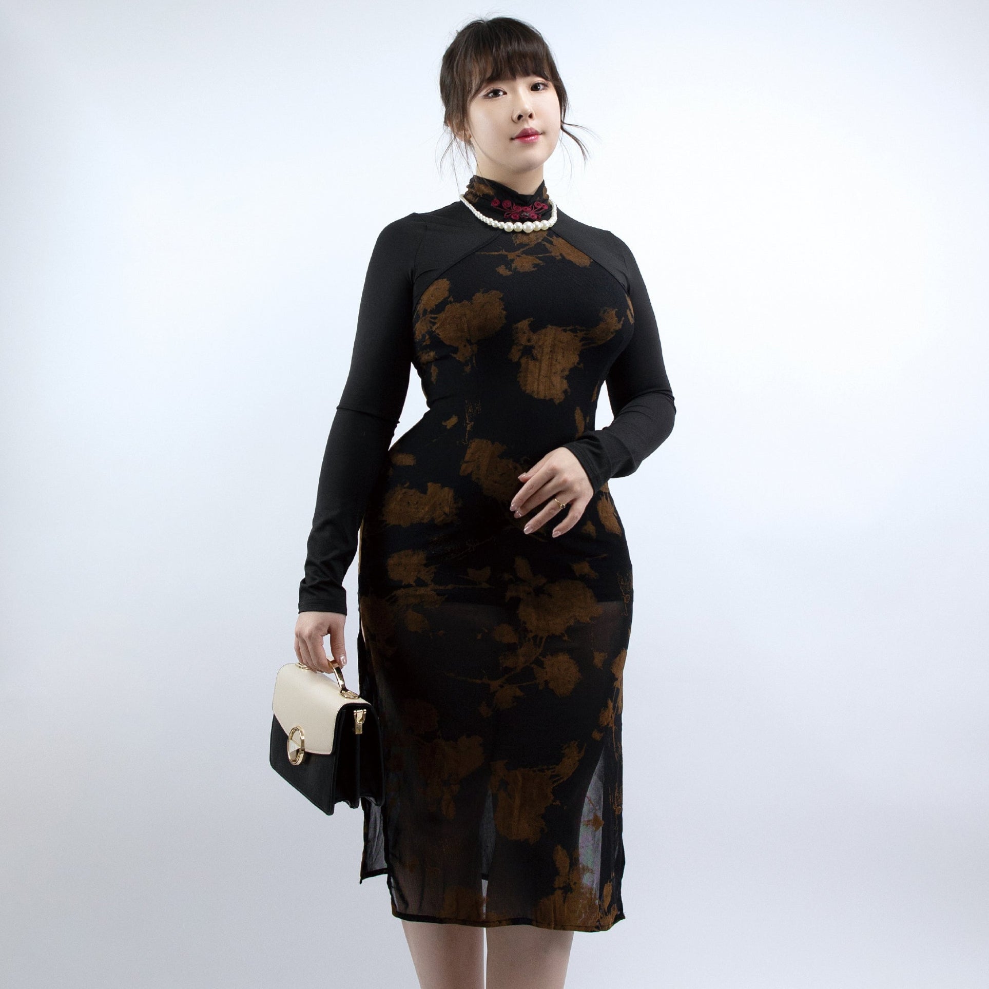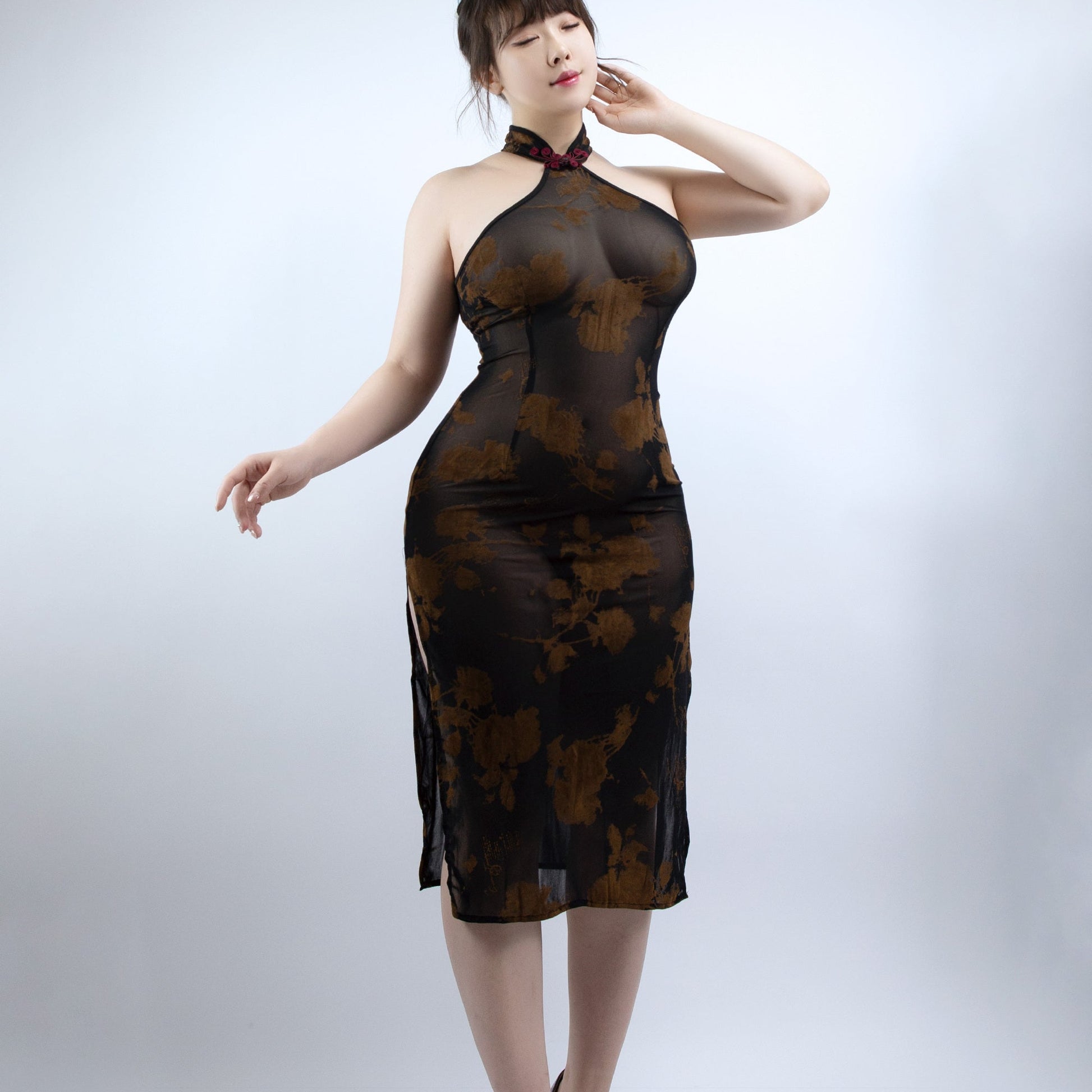 透け透けエッチでエレガントなストレッチチャイナドレス【TANG YUAN】