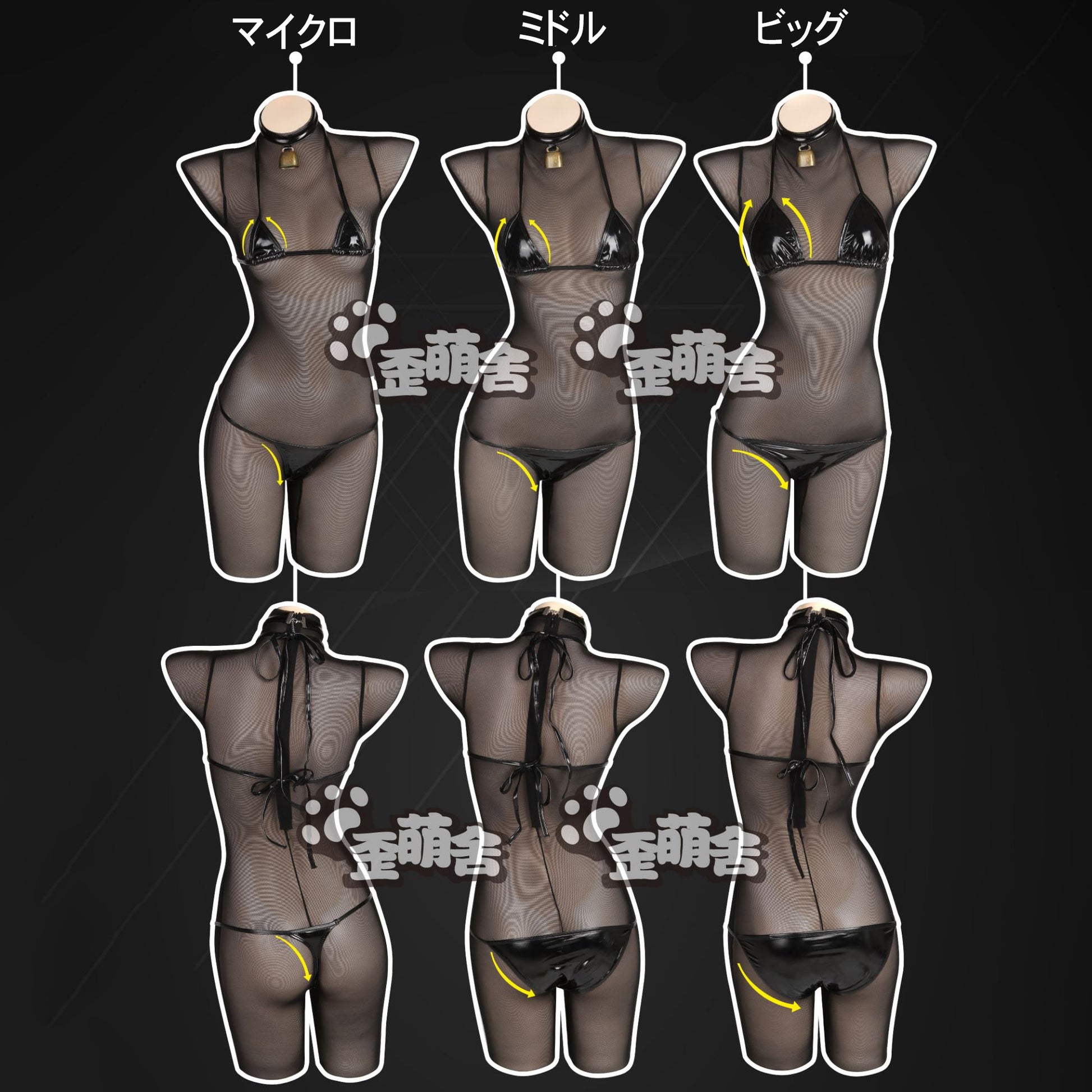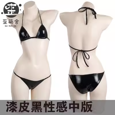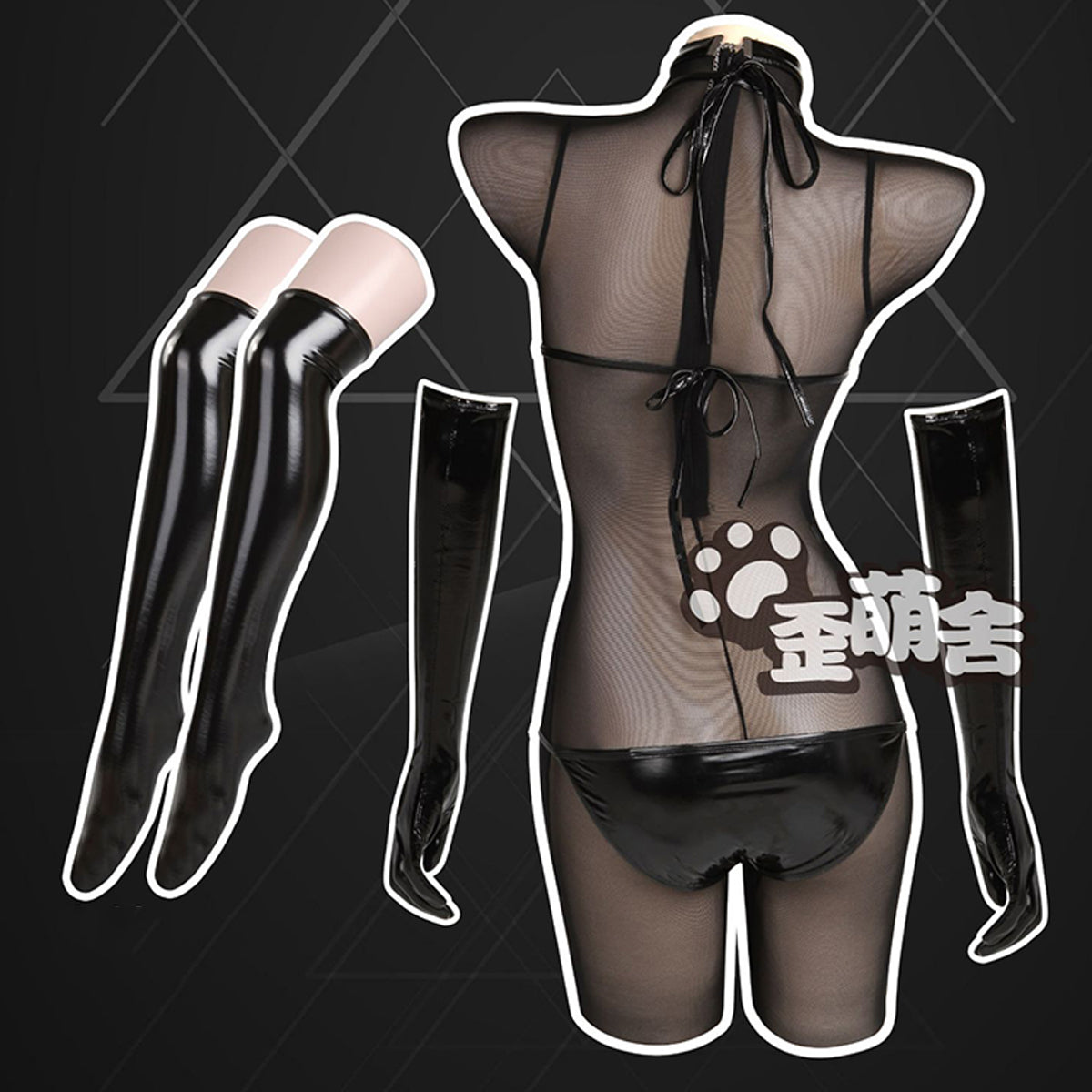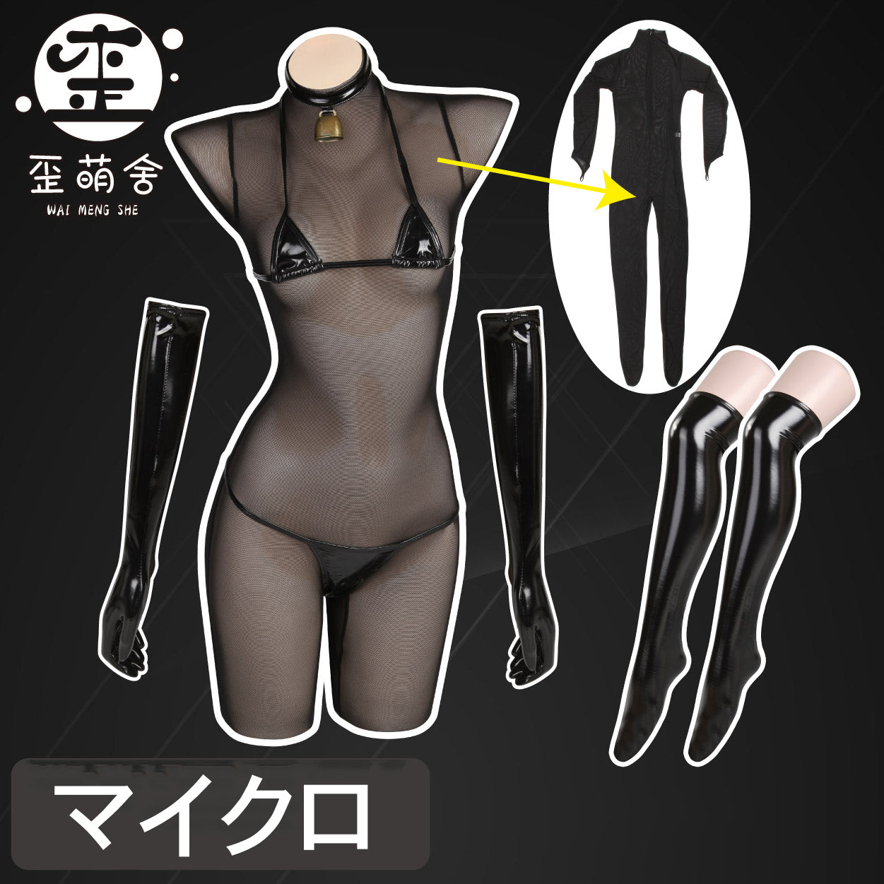 透け透けメッシュボディスーツとエナメルビキニコスプレ5点セット【歪萌舍】