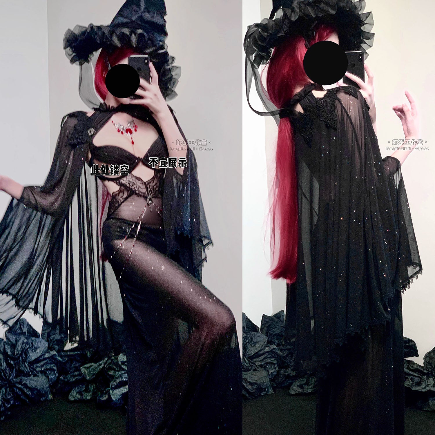 透け透けスパークルメッシュセクシー魔女風ドレスコスプレ マント付き【エビスタジオ】