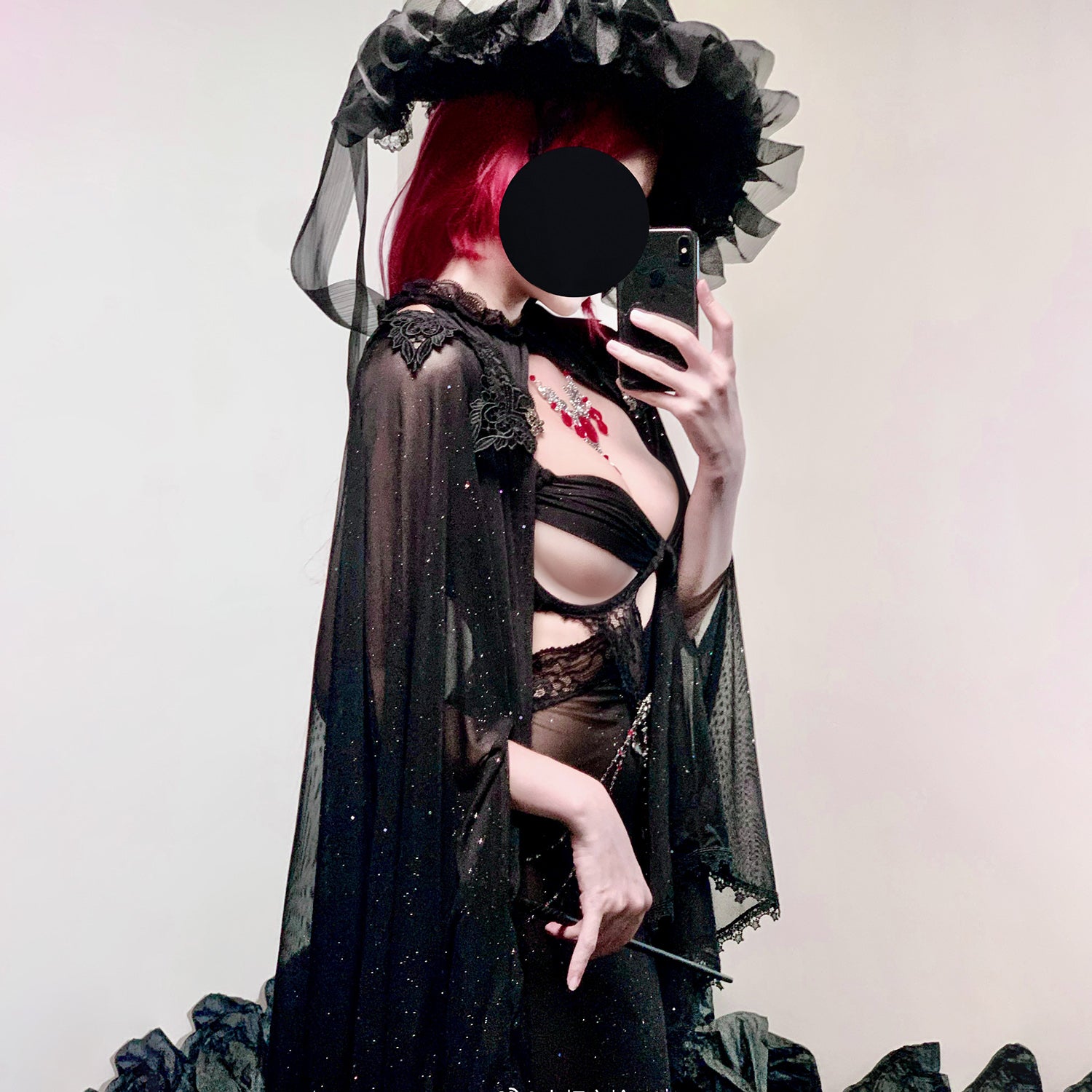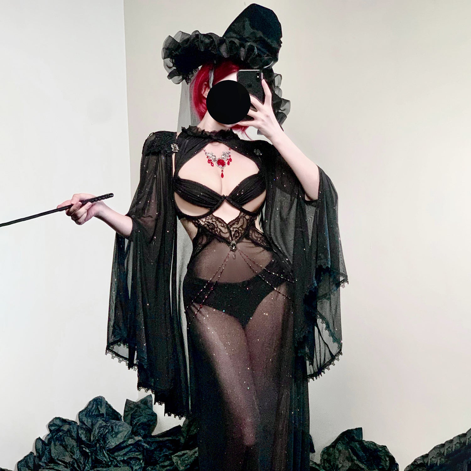 輝くスパークルメッシュ生地が魔法のように煌めくセクシー魔女コスプレドレスです🖤