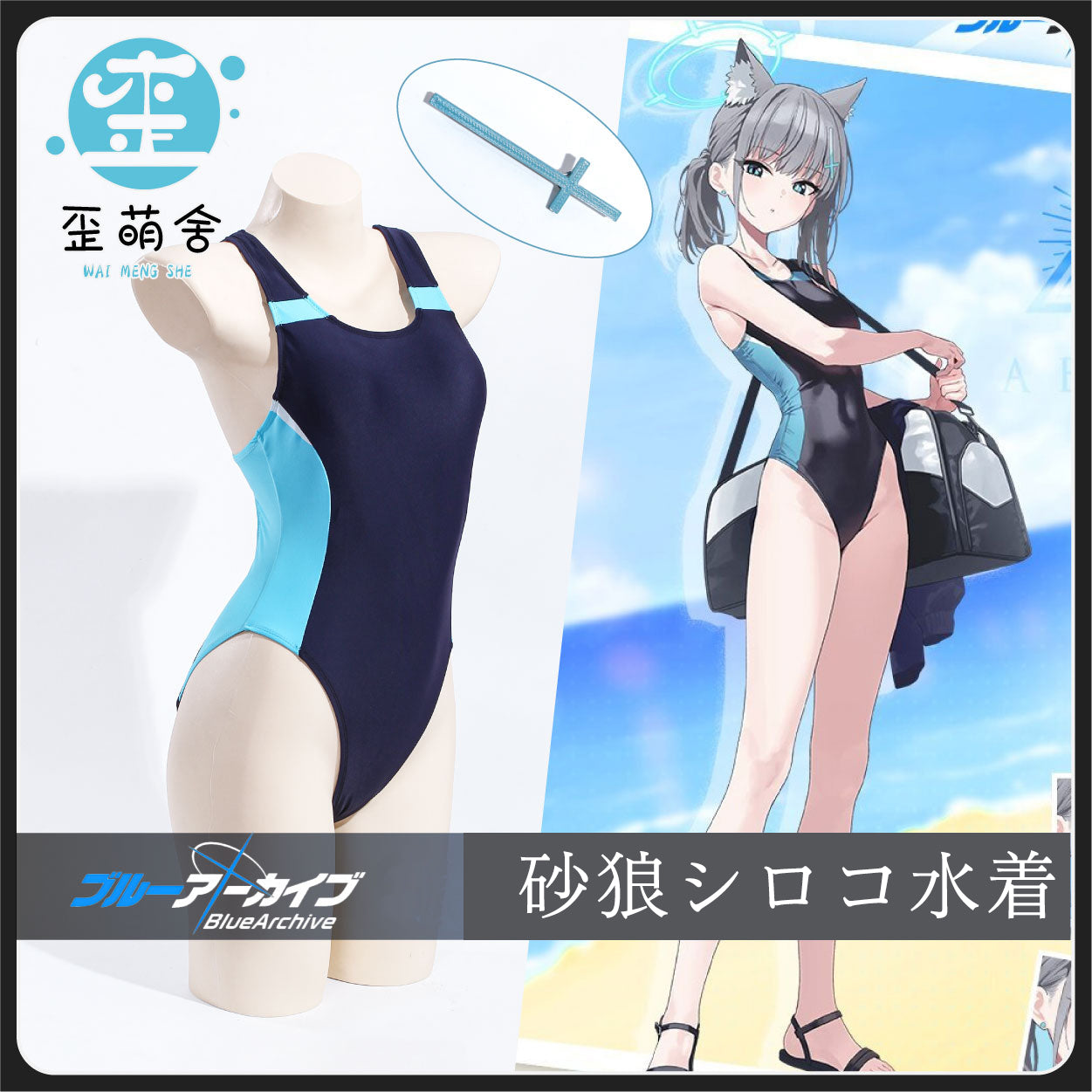 ブルーアーカイブ 砂狼シロコハイレグ競泳水着コスプレ【歪萌舍】