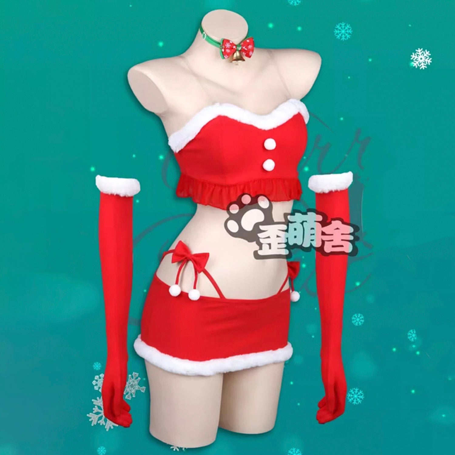 ふわもこセクシーセパレートサンタガールコスプレ8点セット ミニ丈スカート アームカバー付き クリスマス衣装【歪萌舍】