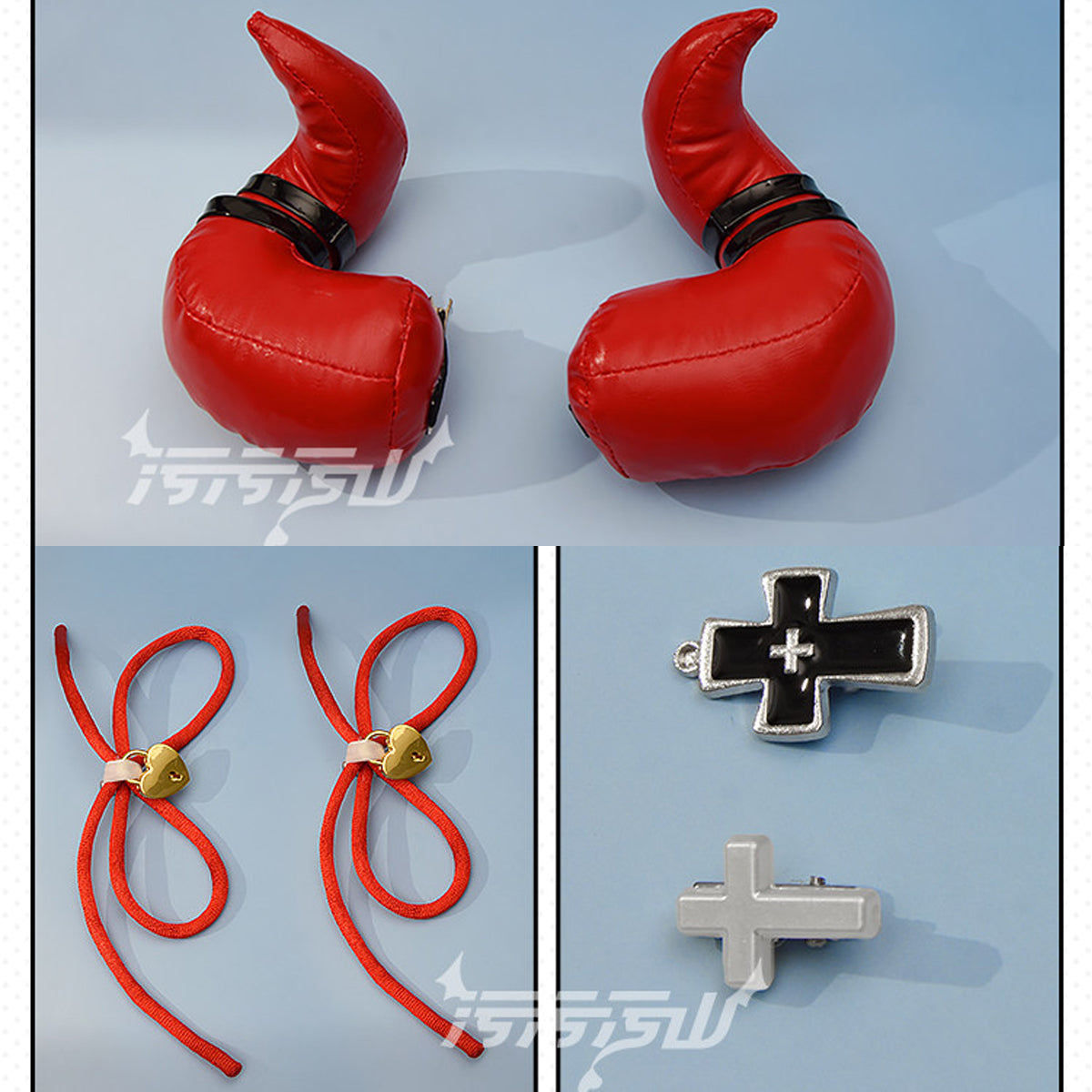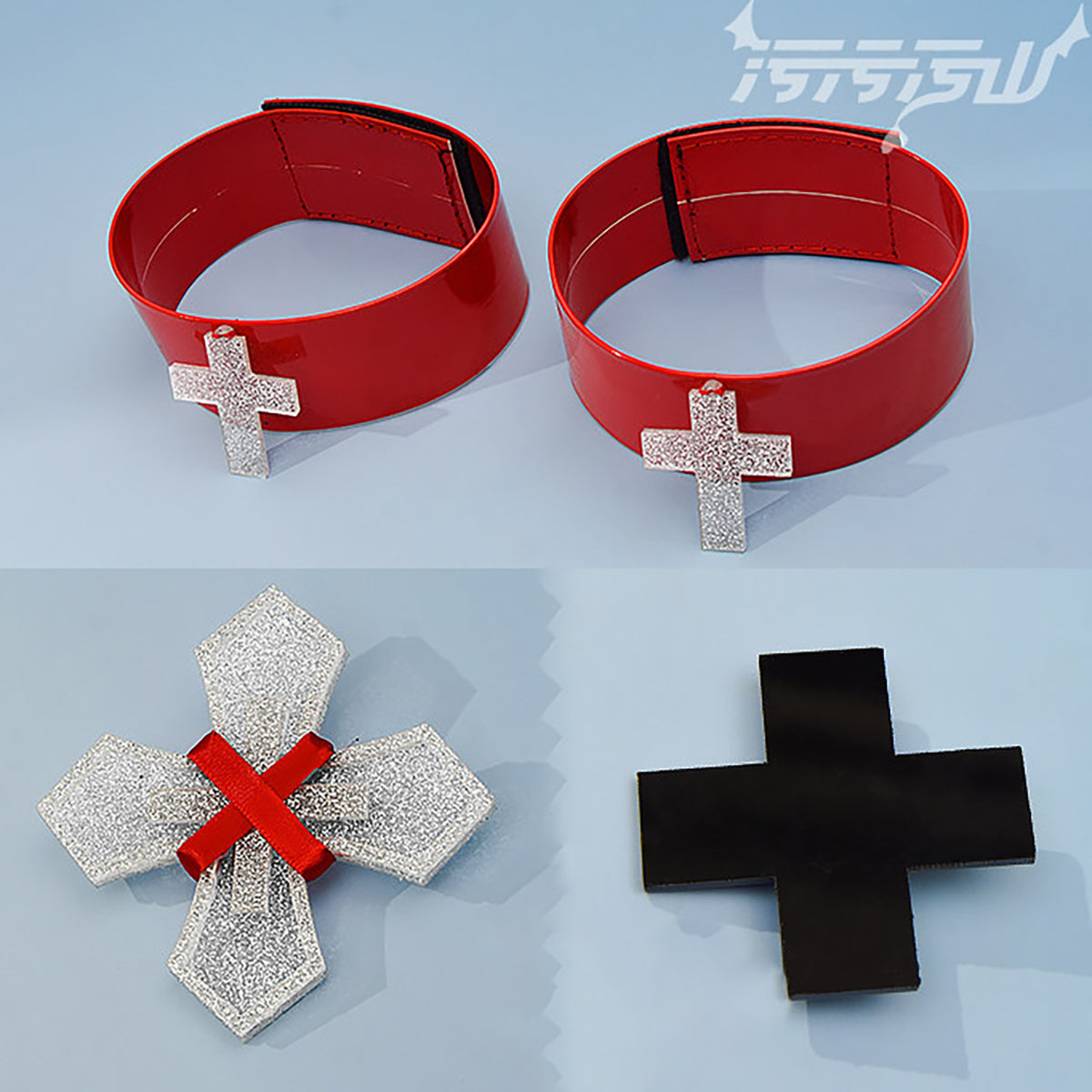 ブラックとレッドを基調とした配色に、ベルトやクロスモチーフを組み合わせ、クールさと可愛さをバランスよく演出します。