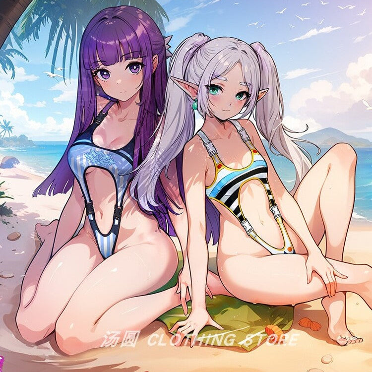 葬送のフリーレン&フェルン シンプルな超ハイレグセクシー競泳水着【TANG YUAN】